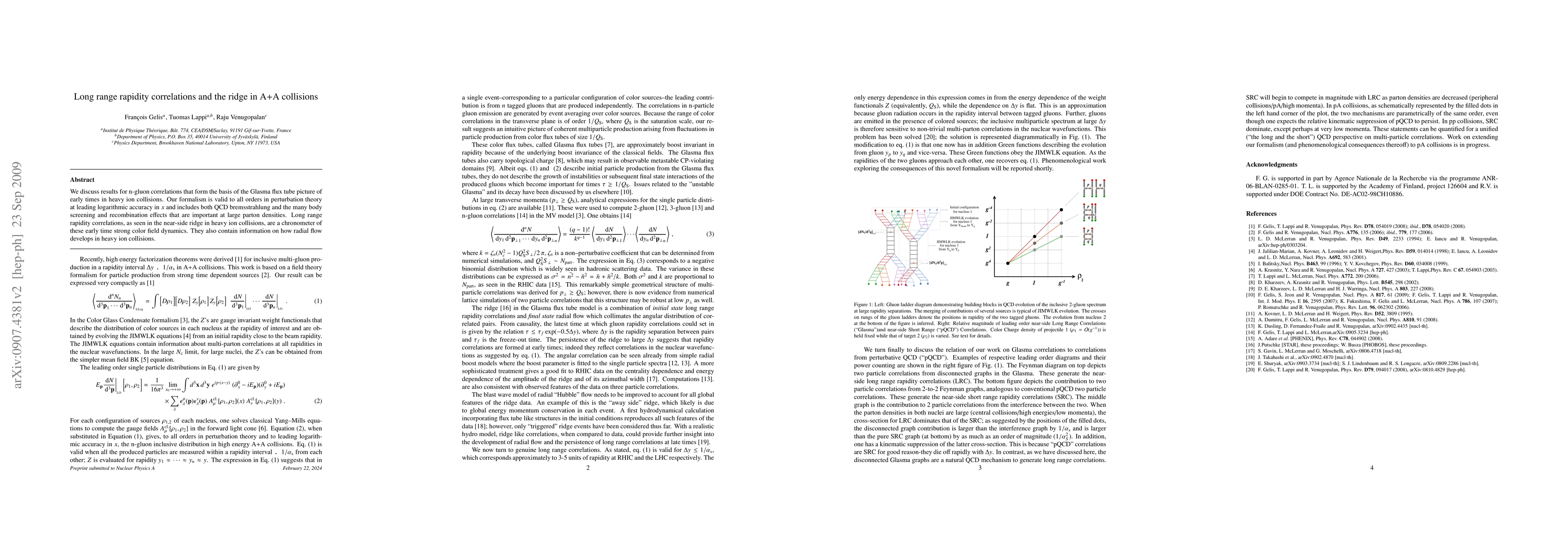 We discuss results for n-gluon correlations that form the basis of the Glasma flux tube picture of early times in heavy ion collisions. Our formalism is valid to all orders in perturbation theory at leading logarithmic accuracy in x and includes both QCD bremsstrahlung and the many body screening and recombination effects that are important at large parton densities. Long range rapidity correlations, as seen in the near-side ridge in heavy ion collisions, are a chronometer of these early time strong color field dynamics. They also contain information on how radial flow develops in heavy ion collisions.