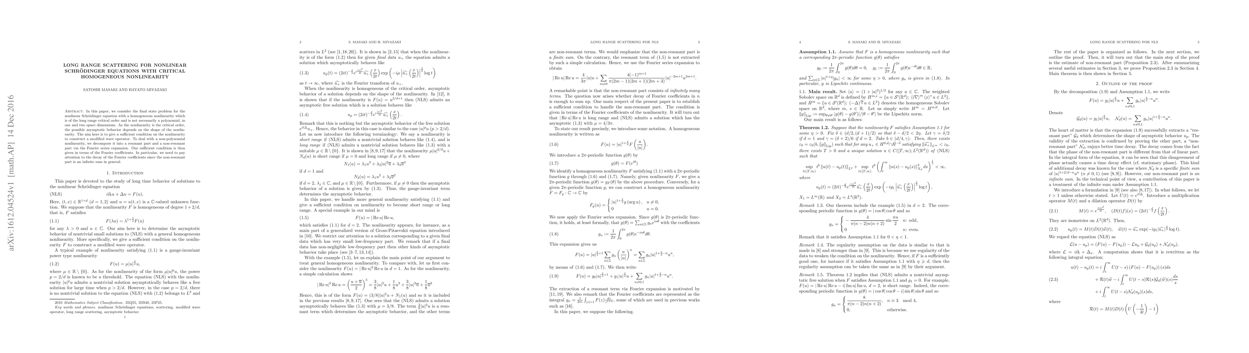 This paper investigates the final state problem for nonlinear Schrödinger equations with critical homogeneous nonlinearity, focusing on one and two dimensions. It provides a sufficient condition for constructing a modified wave operator based on the Fourier coefficients of the decomposed nonlinearity, emphasizing the decay rate of these coefficients to handle non-polynomial terms.