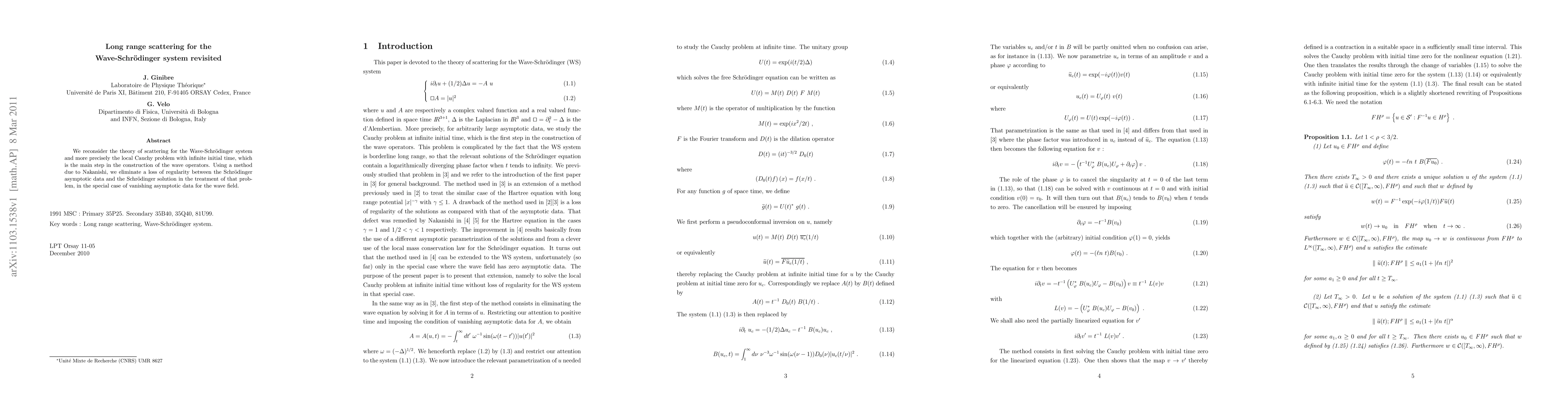 We reconsider the theory of scattering for the Wave-Schr\"odinger system and more precisely the local Cauchy problem with infinite initial time, which is the main step in the construction of the wave operators. Using a method due to Nakanishi, we eliminate a loss of regularity between the Schr\"odinger asymptotic data and the Schr\"odinger solution in the treatment of that problem, in the special case of vanishing asymptotic data for the wave field.