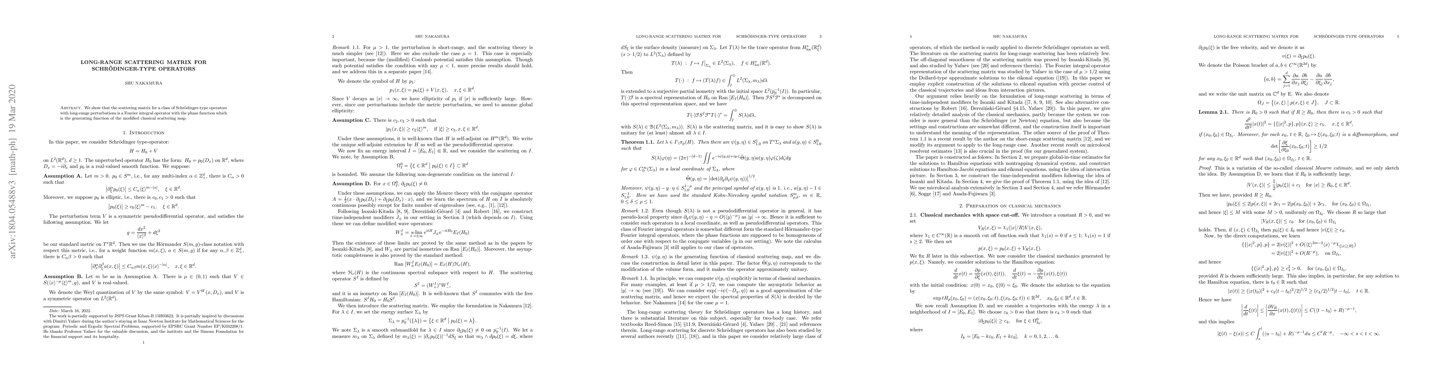 Summary: This paper demonstrates that the scattering matrix for specific long-range perturbed Schrödinger-type operators can be represented as a Fourier integral operator, with its phase function derived from the modified classical scattering map.