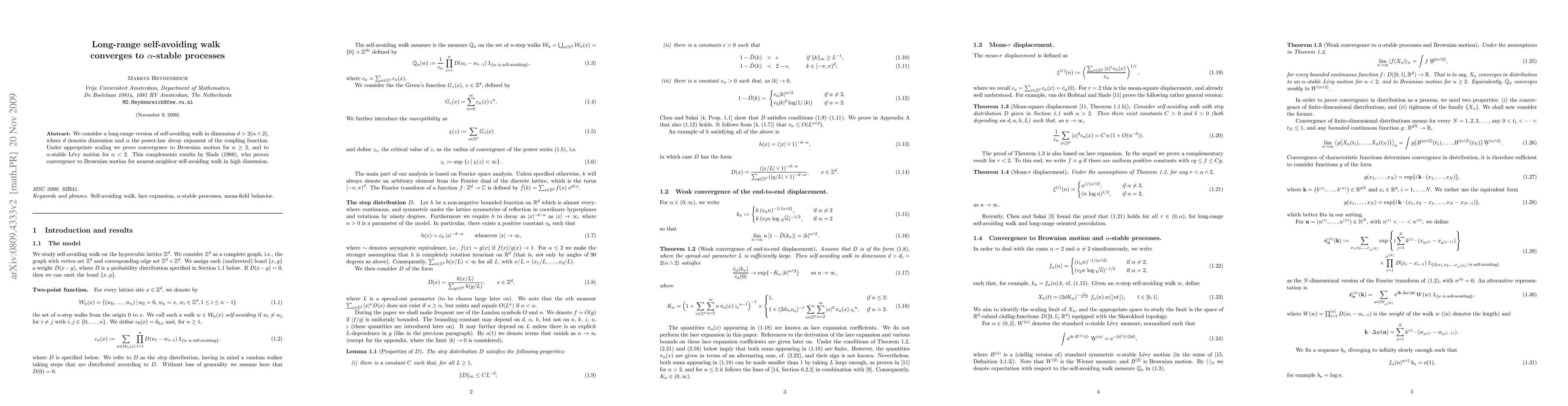 This paper investigates a long-range self-avoiding walk in high dimensions, proving convergence to Brownian motion for power-law decay exponents $\alpha \ge 2$, and to $\alpha$-stable Lévy motion for $\alpha < 2$. This extends previous results on nearest-neighbor self-avoiding walks.