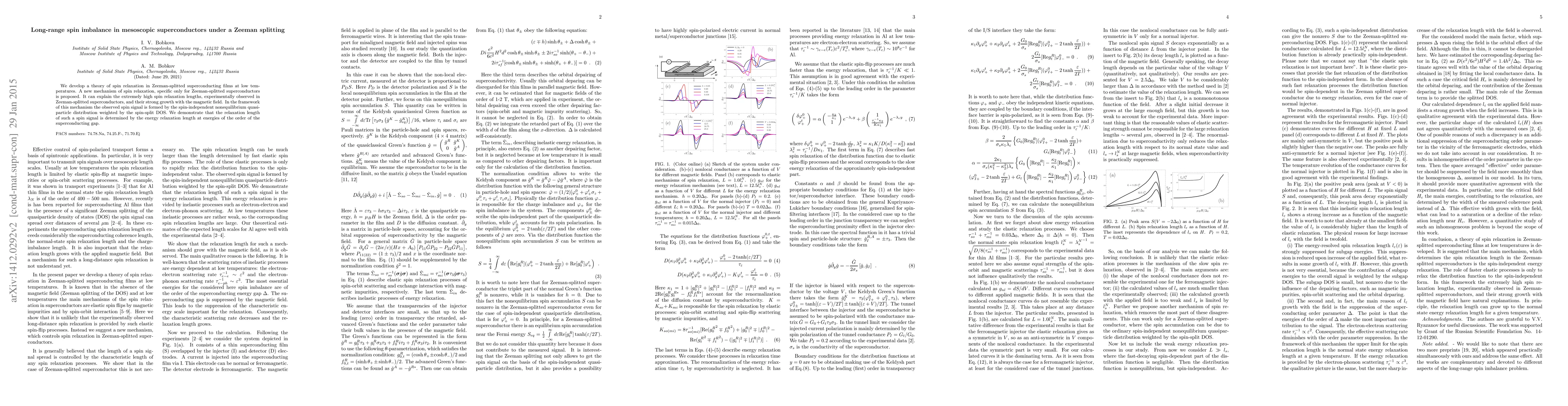 This paper proposes a novel mechanism for spin relaxation in Zeeman-splitted superconducting films, explaining the observed long-range spin imbalance and its dependence on magnetic field. The mechanism attributes the high spin relaxation lengths to the spin-split density of states and energy relaxation at the superconducting gap energy.