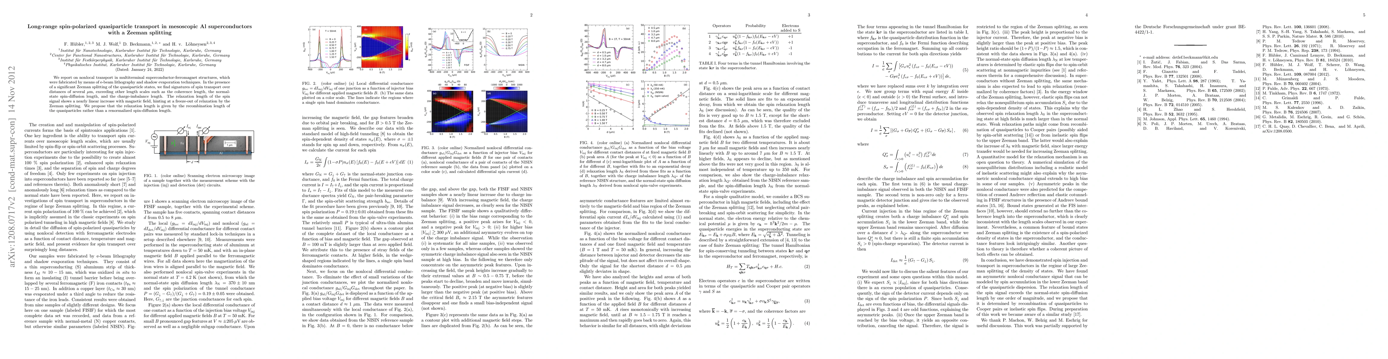 We report on nonlocal transport in multiterminal superconductor-ferromagnet structures, which were fabricated by means of e-beam lithography and shadow evaporation techniques. In the presence of a significant Zeeman splitting of the quasiparticle states, we find signatures of spin transport over distances of several {\mu}m, exceeding other length scales such as the coherence length, the normal-state spin-diffusion length, and the charge-imbalance length. The relaxation length of the spin signal shows a nearly linear increase with magnetic field, hinting at a freeze-out of relaxation by the Zeeman splitting. We propose that the relaxation length is given by the recombination length of the quasiparticles rather than a renormalized spin-diffusion length.