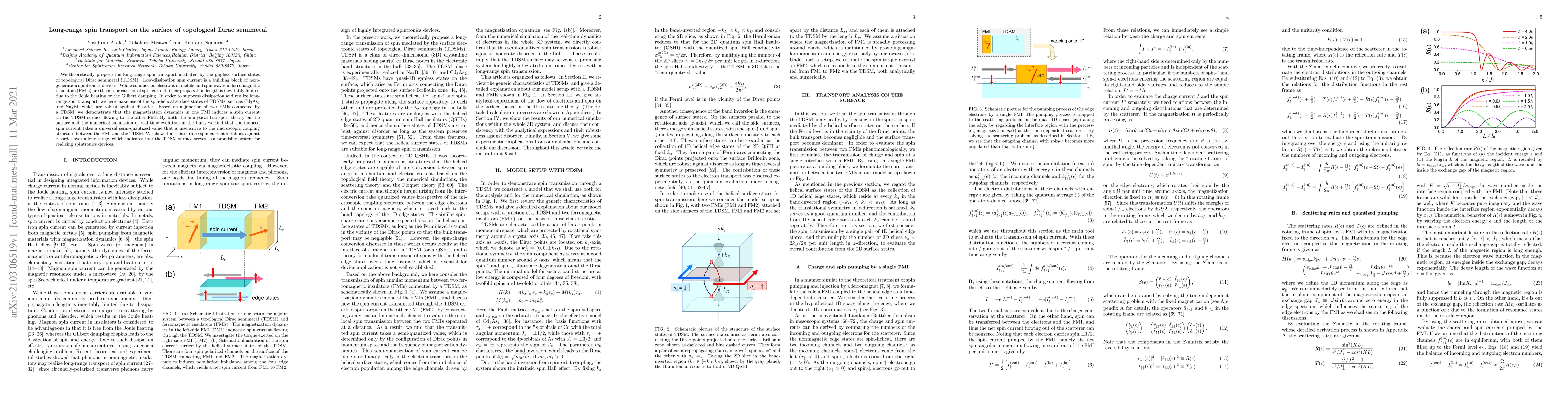 This paper proposes long-range spin transport via gapless surface states in topological Dirac semimetals (TDSMs), demonstrating robust, low-dissipation spin currents that are insensitive to microscopic coupling and disorder, making TDSMs a promising platform for next-generation spintronics.