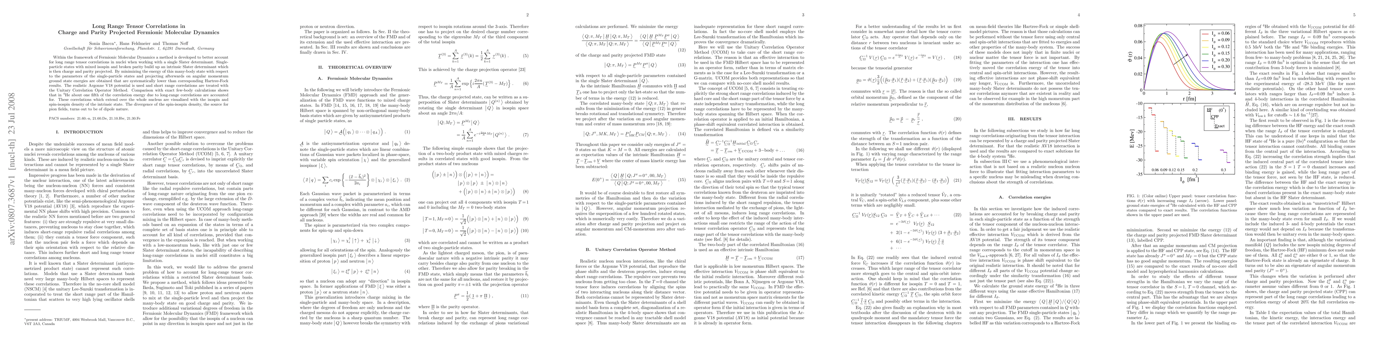 Within the framework of Fermionic Molecular Dynamics a method is developed to better account for long range tensor correlations in nuclei when working with a single Slater determinant. Single-particle states with mixed isospin and broken parity build up an intrinsic Slater determinant which is then charge and parity projected. By minimizing the energy of this many-body state with respect to the parameters of the single-particle states and projecting afterwards on angular momentum ground state energies are obtained that are systematically lower than corresponding Hartree-Fock results. The realistic Argonne V18 potential is used and short range correlations are treated with the Unitary Correlation Operator Method. Comparison with exact few-body calculations shows that in $^4$He about one fifth of the correlation energy due to long-range correlations are accounted for. These correlations which extend over the whole nucleus are visualized with the isospin and spin-isospin density of the intrinsic state. The divergence of the spin-isospin density, the source for pion fields, turns out to be of dipole nature.