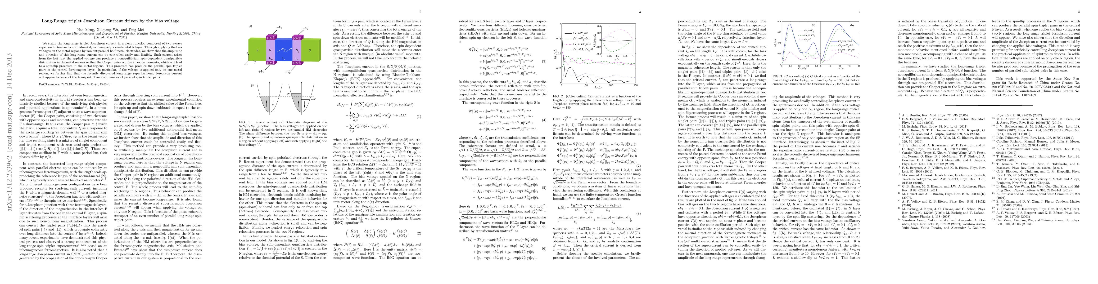 We study the long-range triplet Josephson current in a clean junction composed of two s-wave superconductors and a normal-metal/ferromagnet/normal-metal trilayer. Through applying the bias voltages on the metal regions by two antiparallel half-metal electrodes, we show that the amplitude and direction of this long-range current can be controlled easily and flexibly. Such current arises from the fact that the applied voltage can produce a nonequilibrium spin-dependent quasiparticle distribution in the metal regions so that the Cooper pairs acquire an extra momenta, which will lead to a spin-flip processes in the metal regions. This processes can produce the parallel spin triplet pairs in the central ferromagnet layer. In particular, if the voltage is applied only on one metal region, we further find that the recently discovered long-range superharmonic Josephson current will appear because of the transport of an even number of parallel spin triplet pairs.