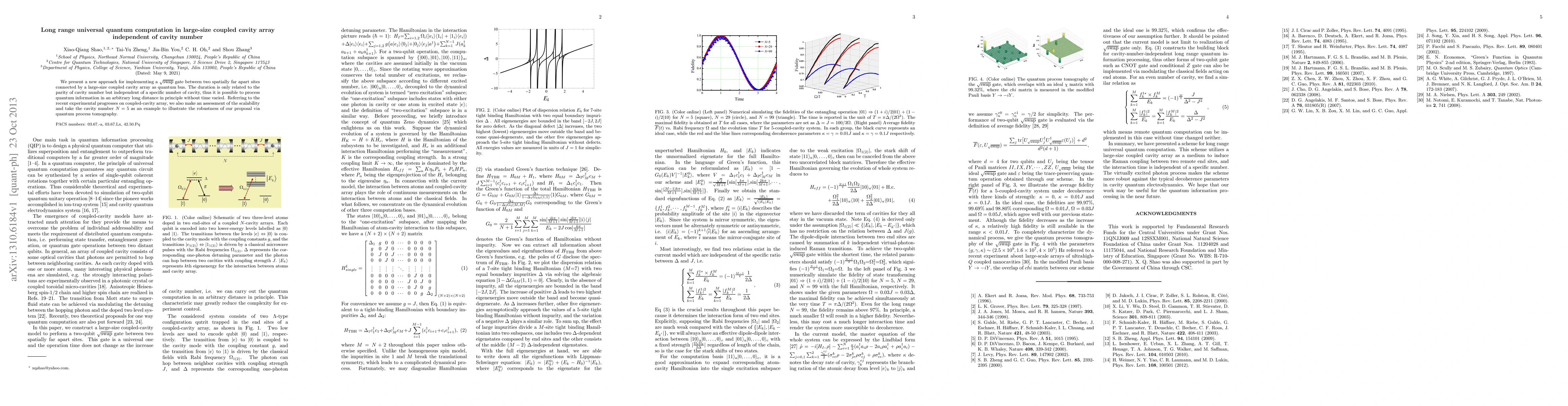 We present a new approach for implementing a $\sqrt{\rm swap}$ gate between two spatially far apart sites connected by a large-size coupled cavity array as quantum bus. The duration is only related to the parity of cavity number but independent of a specific number of cavity, thus it is possible to process quantum information in an arbitrary long distance in principle without time varied. Referring to the recent experimental progresses on coupled-cavity array, we also make an assessment of the scalability and take the cavity number $N$ = 5 as an example to illustrate the robustness of our proposal via quantum process tomography.