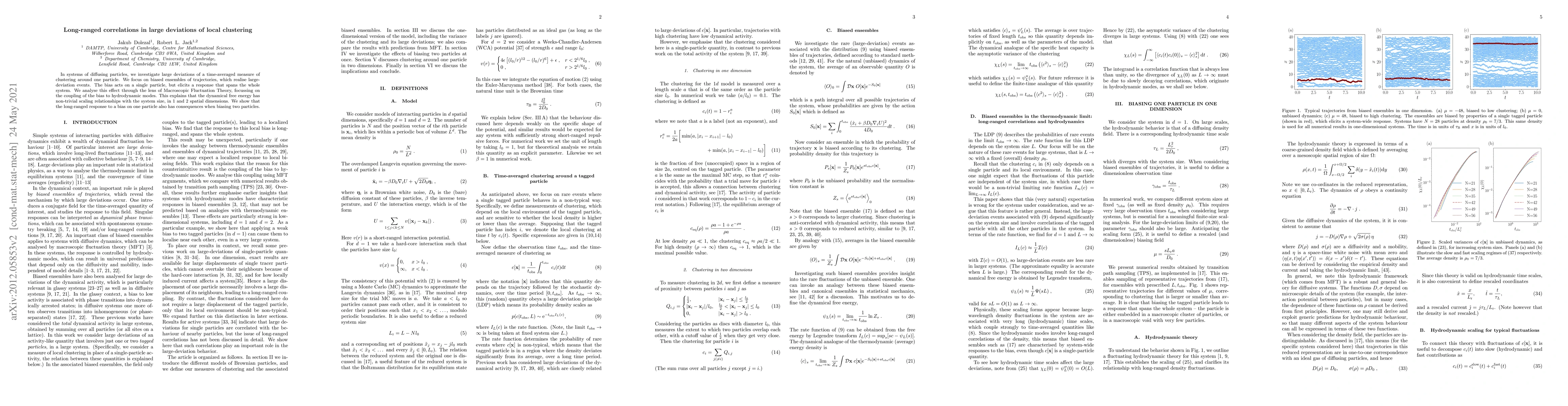 In systems of diffusing particles, we investigate large deviations of a time-averaged measure of clustering around one particle. We focus on biased ensembles of trajectories, which realise large-deviation events. The bias acts on a single particle, but elicits a response that spans the whole system. We analyse this effect through the lens of Macroscopic Fluctuation Theory, focussing on the coupling of the bias to hydrodynamic modes. This explains that the dynamical free energy has non-trivial scaling relationships with the system size, in 1 and 2 spatial dimensions. We show that the long-ranged response to a bias on one particle also has consequences when biasing two particles.