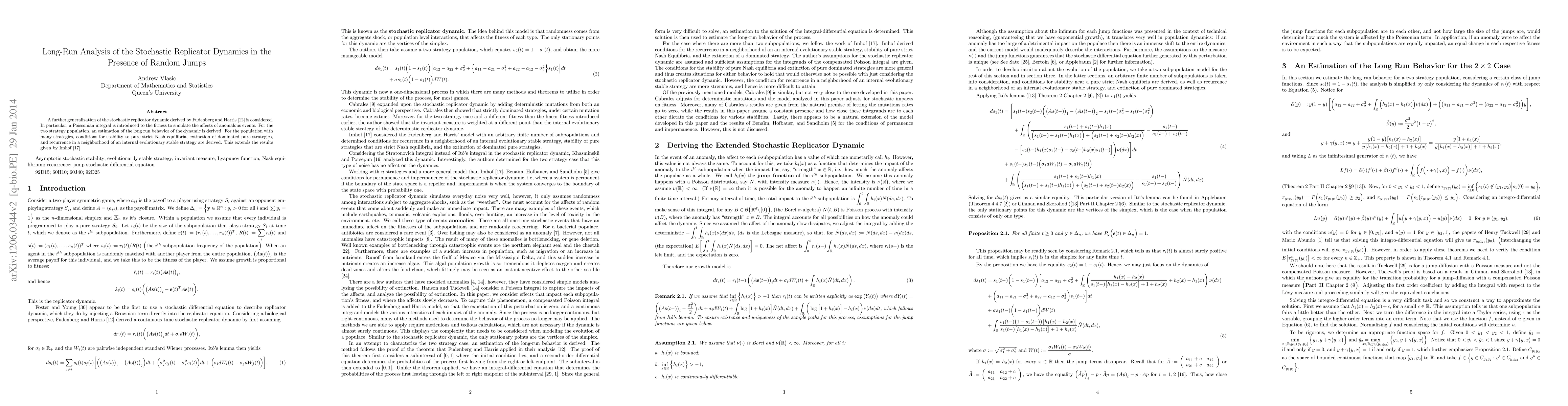 This research paper extends the stochastic replicator dynamics model to include random jumps, enabling the study of anomalous events in evolutionary games. It provides conditions for stability and extinction in multi-strategy populations, building on previous work by Fudenberg, Harris, Imhof, and others.