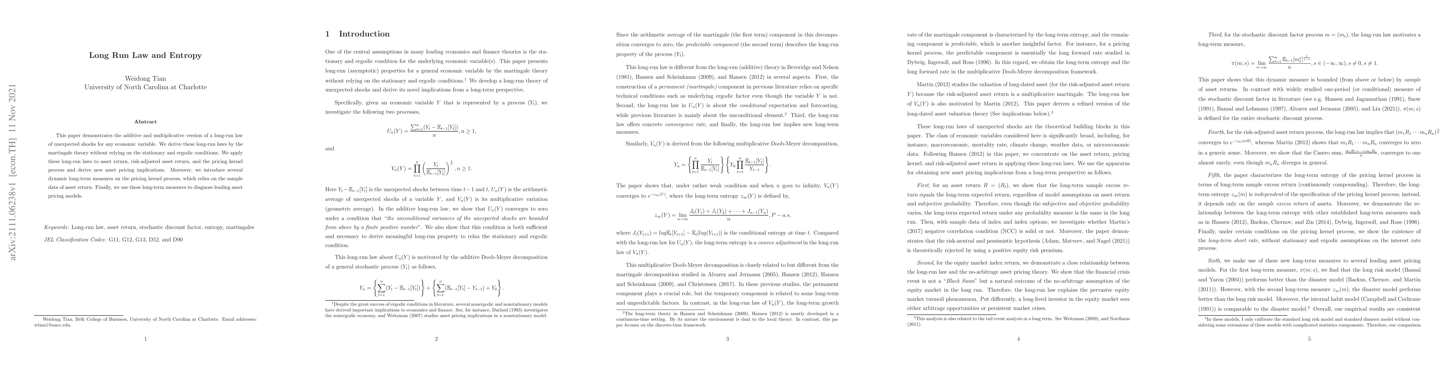 This paper demonstrates the additive and multiplicative version of a long-run law of unexpected shocks for any economic variable. We derive these long-run laws by the martingale theory without relying on the stationary and ergodic conditions. We apply these long-run laws to asset return, risk-adjusted asset return, and the pricing kernel process and derive new asset pricing implications. Moreover, we introduce several dynamic long-term measures on the pricing kernel process, which relies on the sample data of asset return. Finally, we use these long-term measures to diagnose leading asset pricing models.