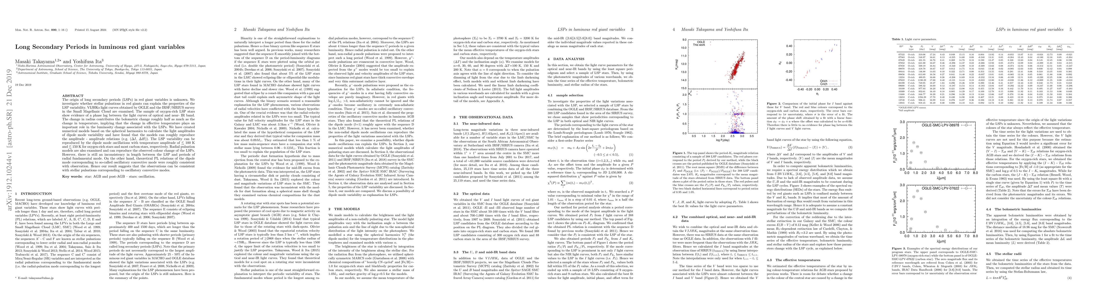 This paper investigates the origin of long secondary periods (LSPs) in luminous red giant variables, finding that dipole mode pulsations, particularly oscillatory convective modes, can reproduce the observed properties of LSPs. Numerical models show that the change in effective temperature significantly contributes to the luminosity changes associated with LSPs.