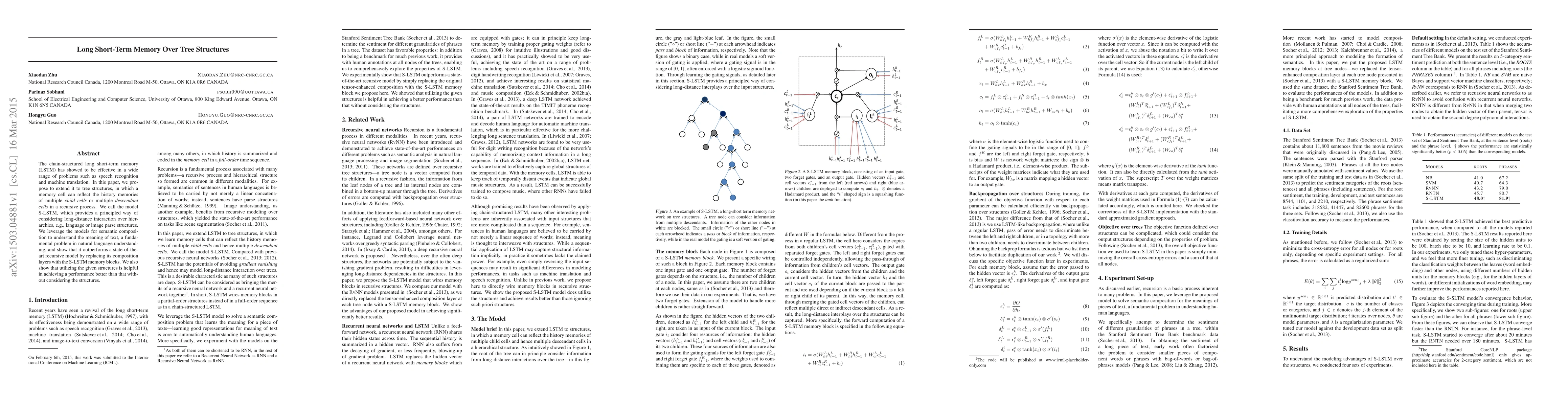 This paper proposes an S-LSTM model to extend LSTM to tree structures, enabling long-distance interaction over hierarchies. It demonstrates improved performance in semantic composition for natural language understanding, outperforming existing recursive models.