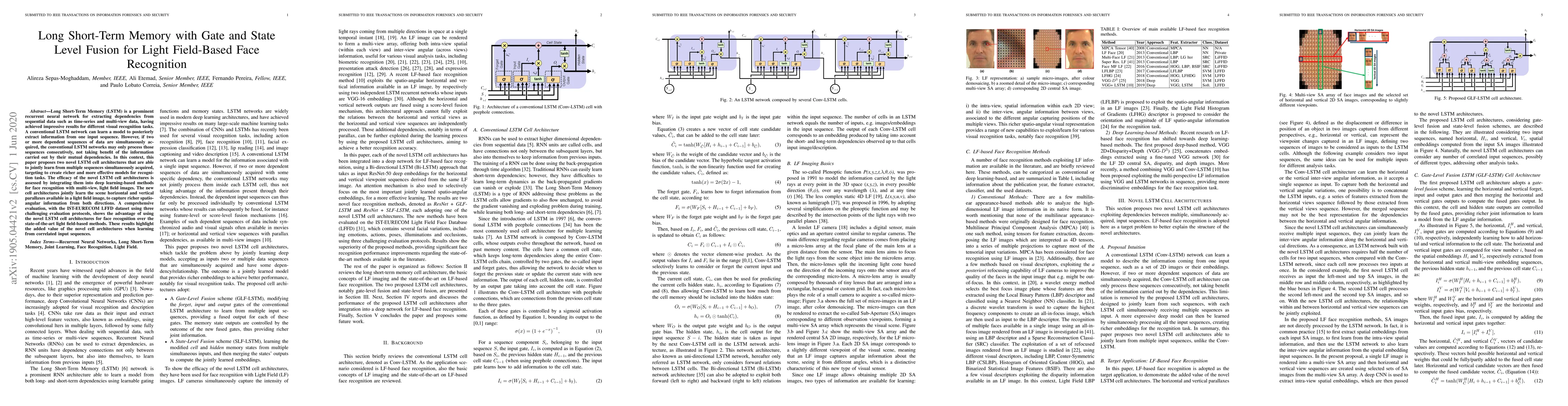 This paper proposes two novel LSTM cell architectures for jointly learning from multiple input sequences, enhancing face recognition using multi-view light field images. The new architectures outperform state-of-the-art methods by capturing richer spatio-angular information from light field data.