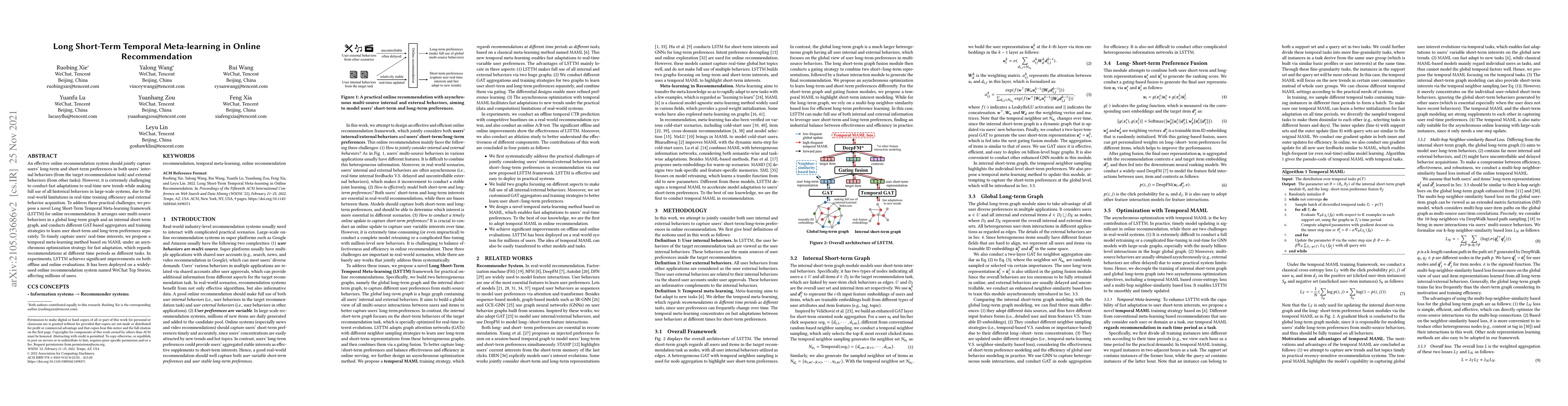 The paper proposes a Long Short-Term Temporal Meta-learning framework (LSTTM) to enhance online recommendation systems by capturing both users' long-term and short-term preferences through multi-source behavior data. The framework employs GAT-based aggregators for separate learning of short-term and long-term preferences and a temporal meta-learning method for fast adaptation to new trends, achieving significant improvements in offline and online evaluations.