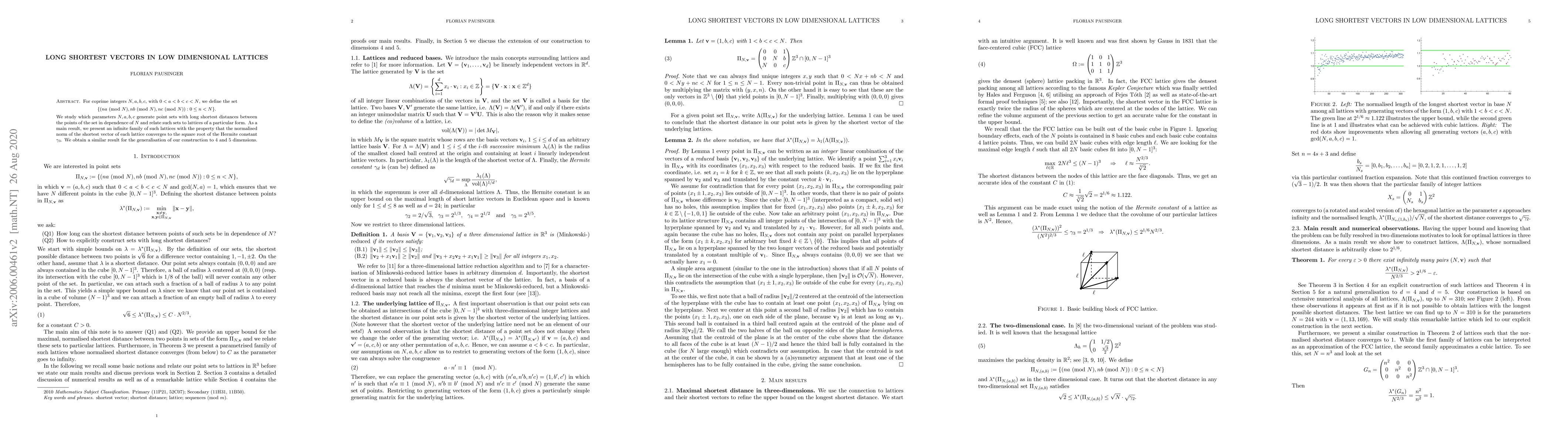 Researchers discovered an infinite family of lattices with shortest distances between points converging to a constant value, related to the Hermite constant gamma3.