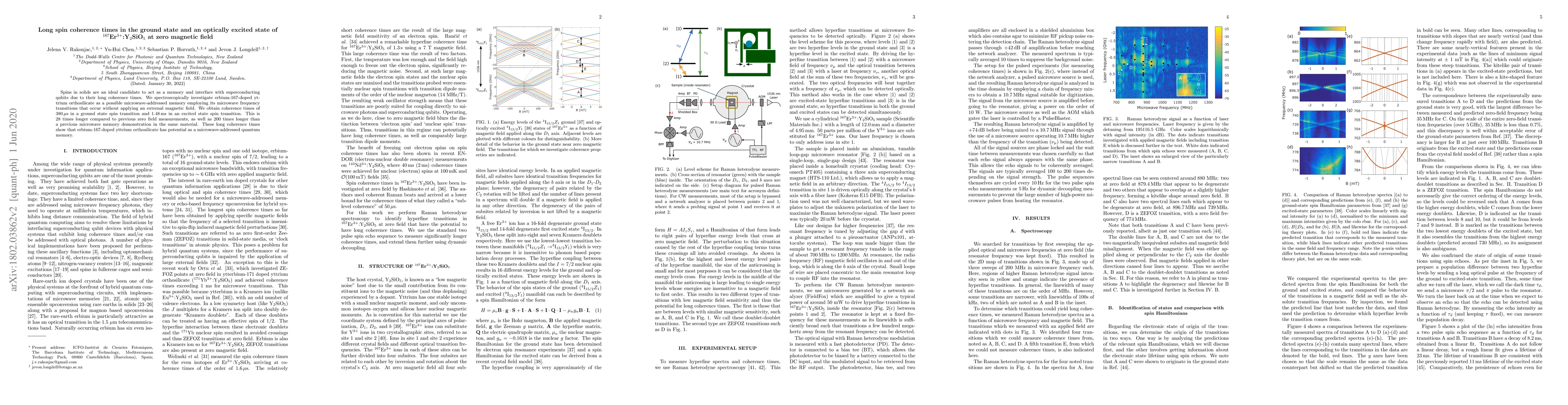 The research investigates erbium-167-doped yttrium orthosilicate for microwave-addressed quantum memory, achieving ground state spin transition coherence of 380 µs and an excited state transition of 1.48 ms at zero magnetic field. This surpasses previous measurements by 28 and 200 times respectively, indicating significant potential for quantum memory applications.