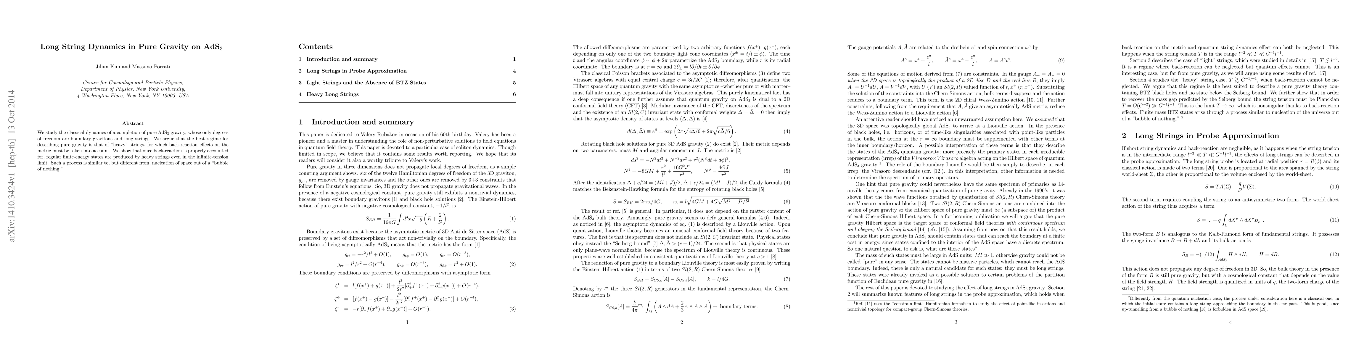 We study the classical dynamics of a completion of pure AdS gravity in 3D, whose only degrees of freedom are boundary gravitons and long strings. We argue that the best regime for describing pure gravity is that of "heavy" strings, for which back-reaction effects on the metric must be taken into account. We show that once back-reaction is properly accounted for, regular finite-energy states are produced by heavy strings even in the infinite-tension limit. Such a process is similar to, but different from, nucleation of space out of a "bubble of nothing."