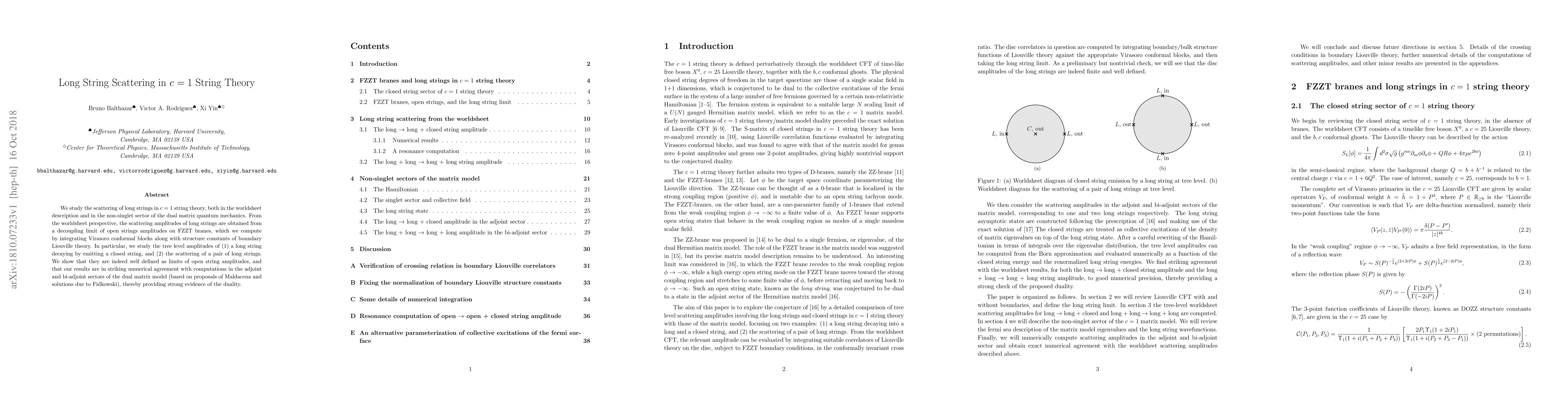 This paper investigates the scattering of long strings in c = 1 string theory, deriving amplitudes from open string scattering on FZZT branes and comparing results with dual matrix quantum mechanics. The study confirms the duality between string theory and matrix models through numerical agreement in scattering processes.
