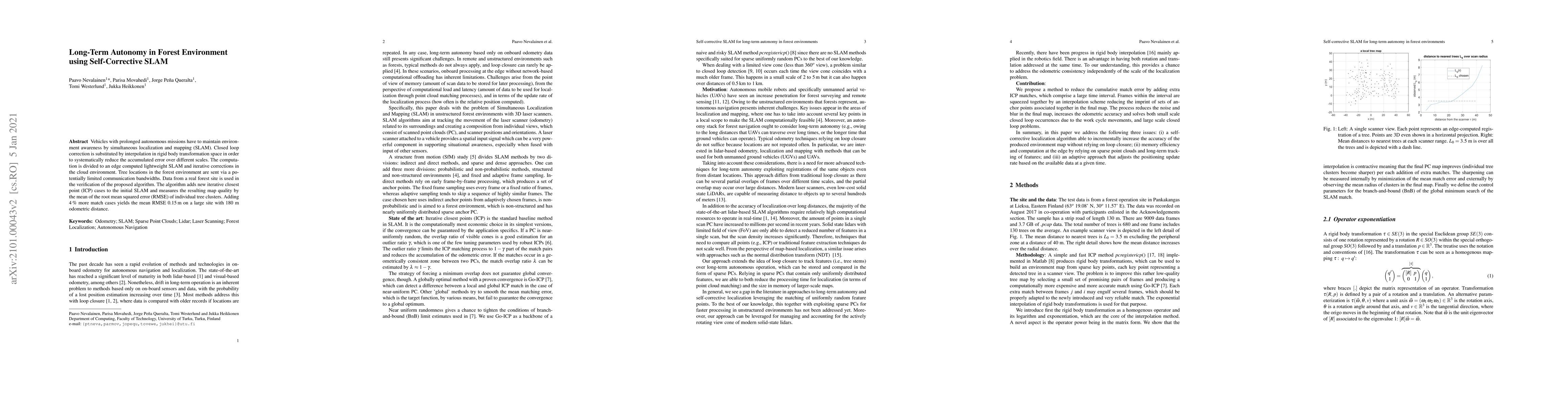 Researchers developed an algorithm to improve long-term autonomy in forest environments with SLAM, reducing accumulated error over different scales through iterative corrections in the cloud environment.