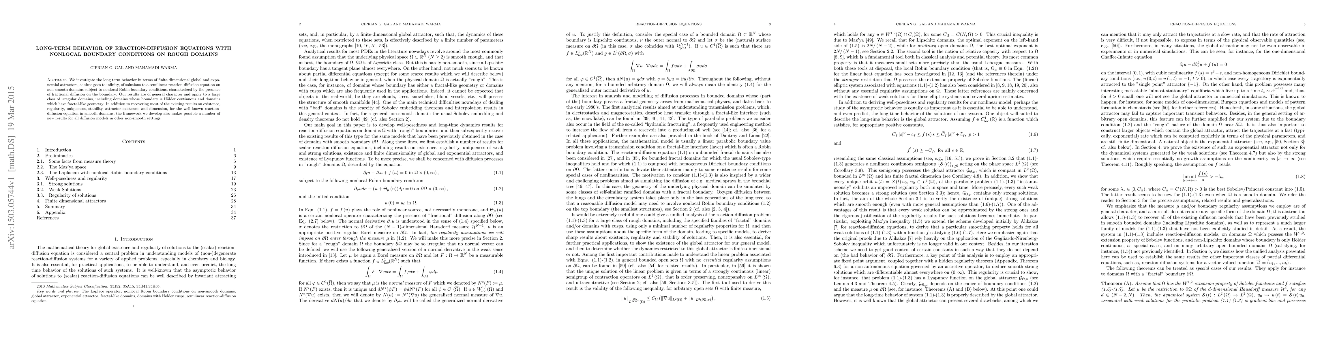 This paper studies the long-term behavior of semilinear reaction-diffusion equations on rough domains with nonlocal boundary conditions, focusing on the existence of finite-dimensional global and exponential attractors. It extends existing results to a broad class of irregular domains, including those with fractal-like geometry.