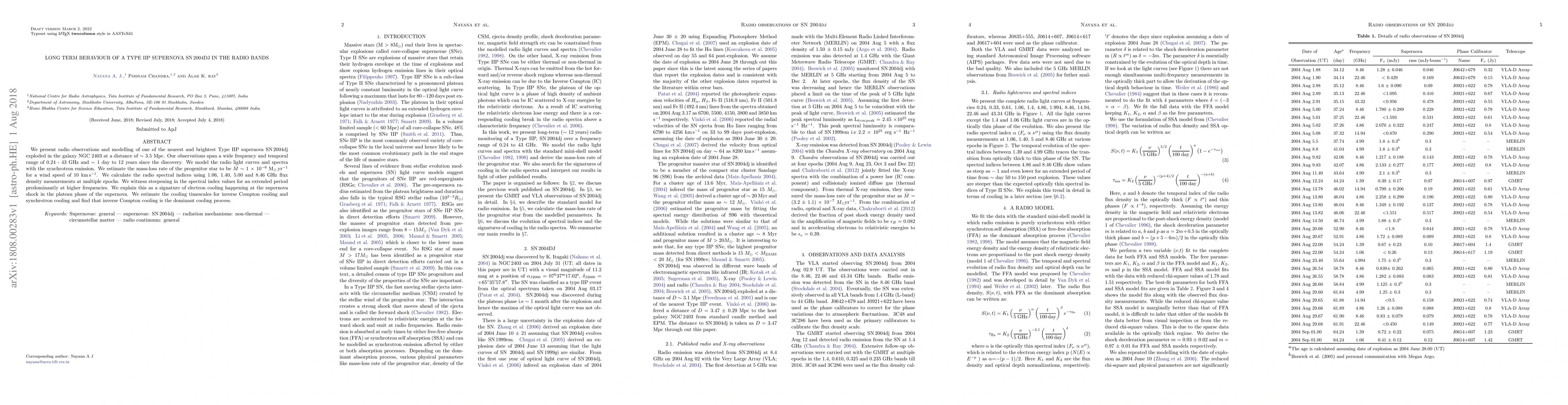 This paper presents radio observations and modelling of the Type IIP supernova SN 2004dj, revealing a steepening in spectral index values indicative of electron cooling at the shock front during the plateau phase. The study estimates the progenitor star's mass-loss rate and identifies inverse Compton cooling as the dominant cooling process.