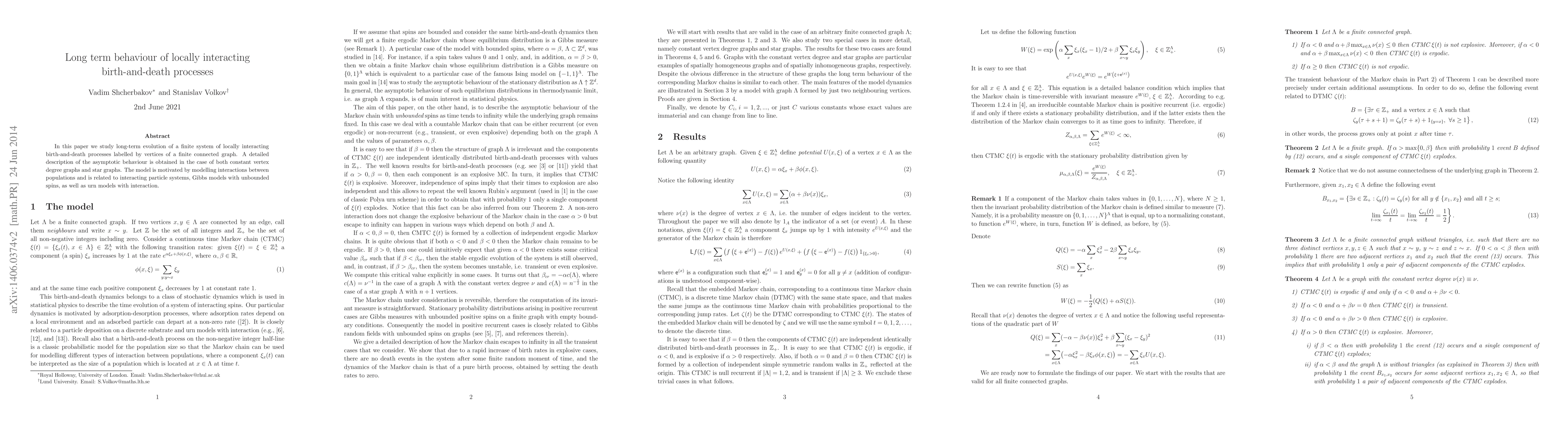 A study on locally interacting birth-and-death processes explores their long-term behavior in finite systems with constant vertex degree graphs and star graphs. The research provides detailed descriptions of the asymptotic behavior and implications for modeling interactions between populations.