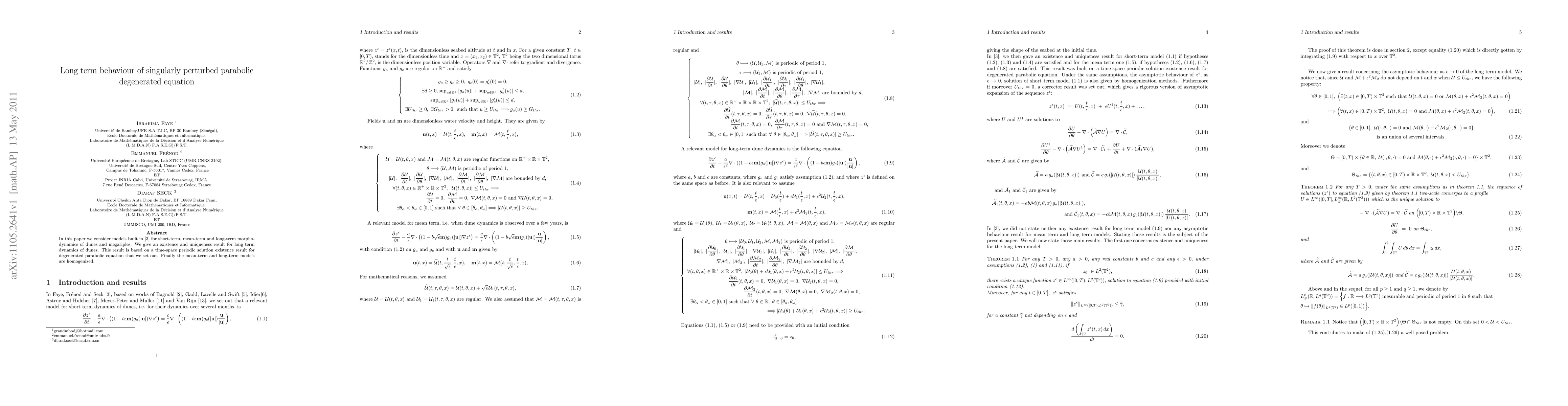This paper establishes a long-term behavior model for dunes and megaripples, showing existence and uniqueness of solutions for degenerated parabolic equations, with implications for understanding morphodynamic dynamics over time.