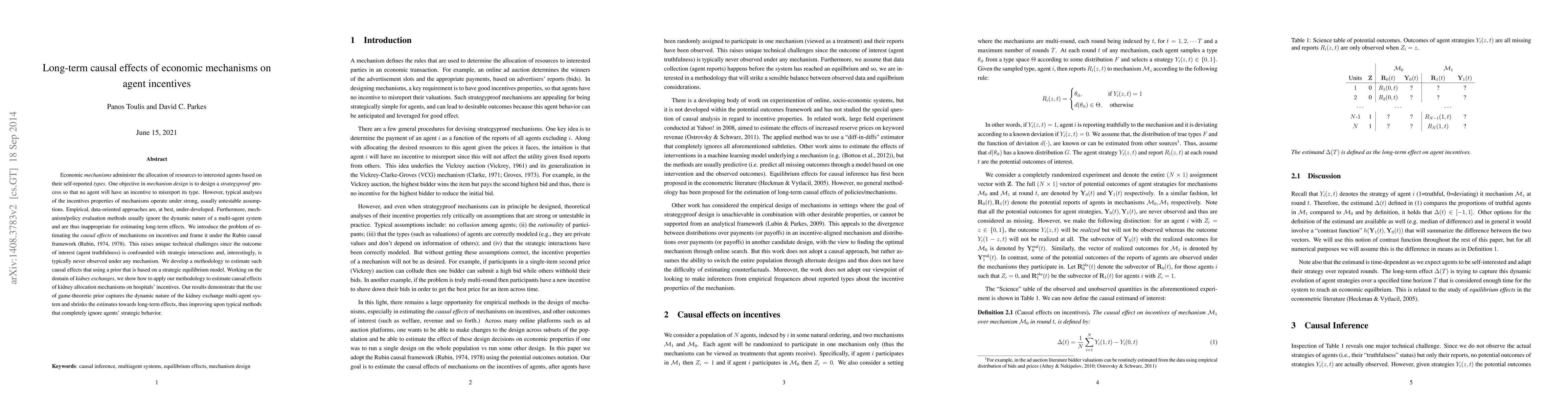 This paper develops a methodology to estimate the long-term causal effects of economic mechanisms on agent incentives, addressing the dynamic nature of multi-agent systems. It applies this approach to kidney exchange mechanisms, showing that incorporating game-theoretic priors improves the estimation of incentives compared to traditional methods.