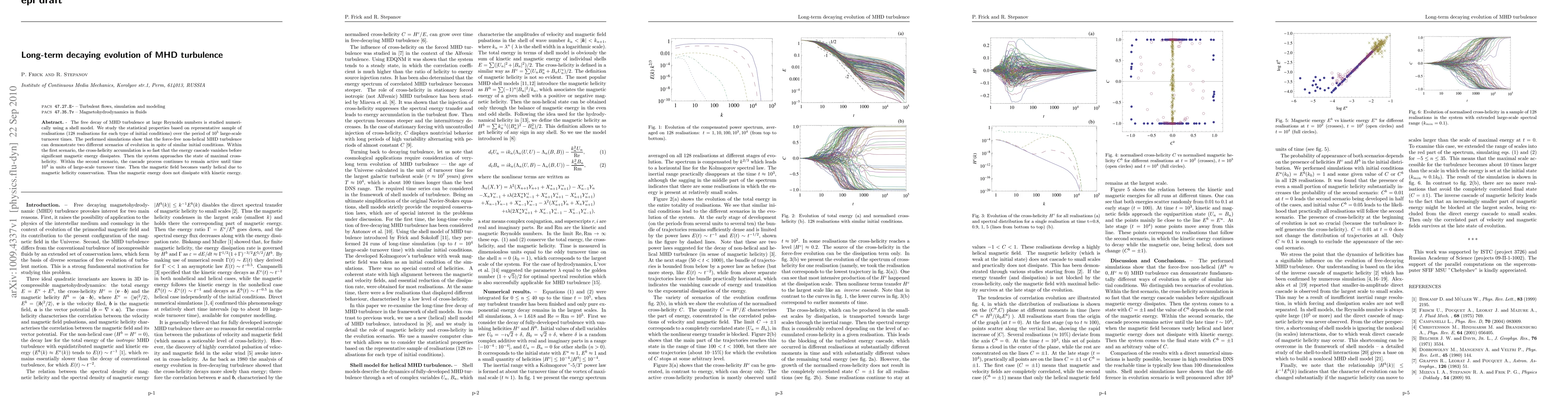 This paper investigates the long-term evolution of MHD turbulence through numerical simulations, revealing two distinct decay scenarios: one where cross-helicity accumulates rapidly, and another where magnetic helicity conservation leads to sustained cascade activity and minimal magnetic energy dissipation.