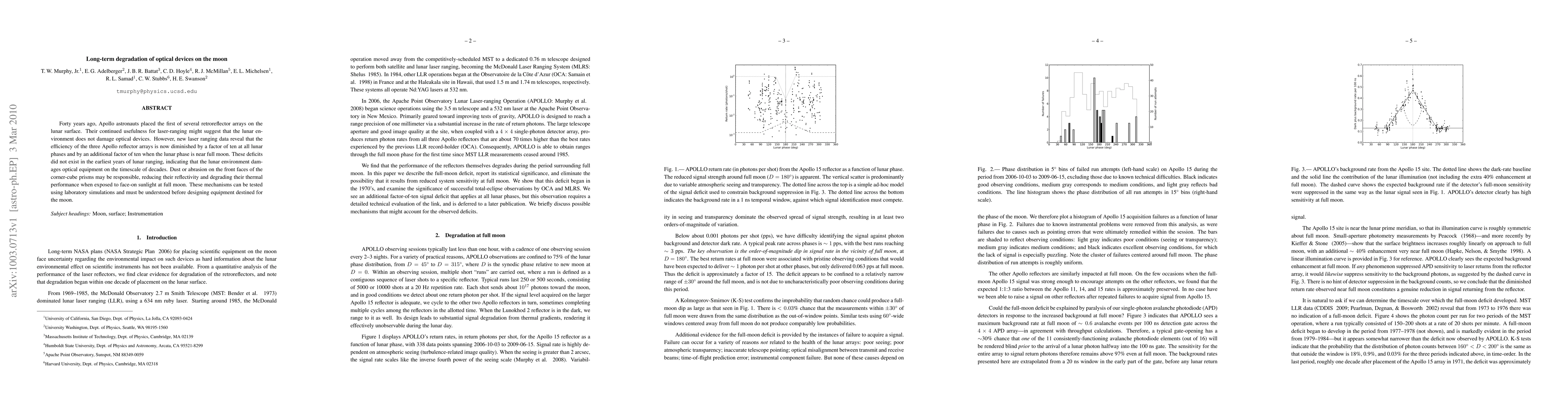The research reveals that lunar environment degrades optical devices over decades, reducing efficiency of Apollo-placed reflector arrays by a factor of hundred at certain lunar phases. Dust or abrasion on prism faces is suggested as the cause, necessitating further lab simulations before future moon missions.
