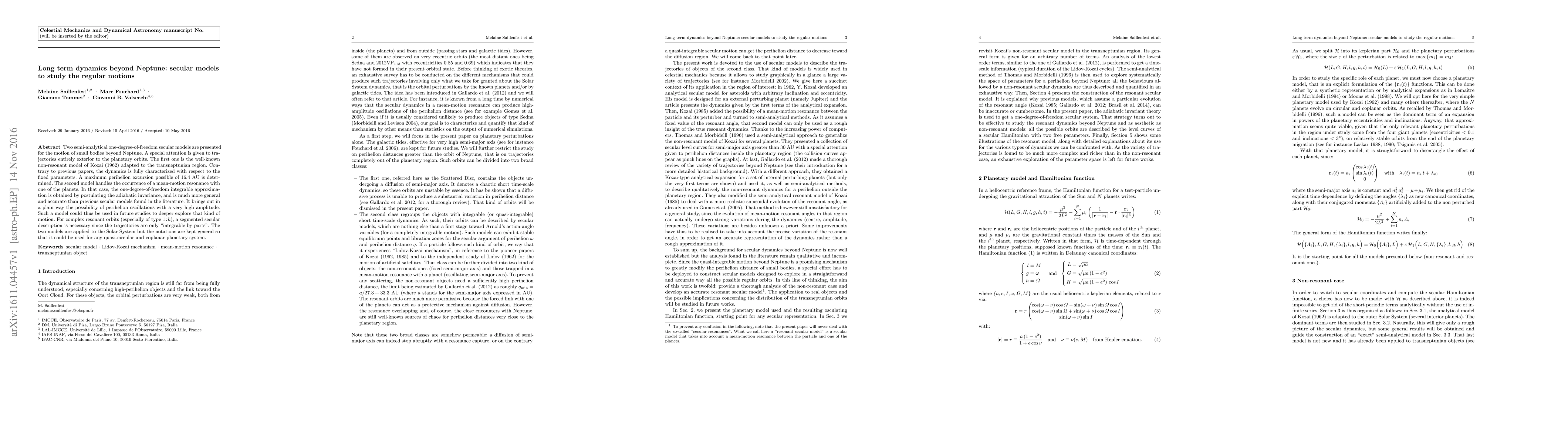 This paper presents two semi-analytical secular models for the motion of small bodies beyond Neptune, focusing on trajectories exterior to planetary orbits. The first model adapts the Kozai mechanism to the transneptunian region, determining a maximum perihelion excursion of 16.4 AU. The second model addresses mean-motion resonances, offering a more general and accurate description of perihelion oscillations.