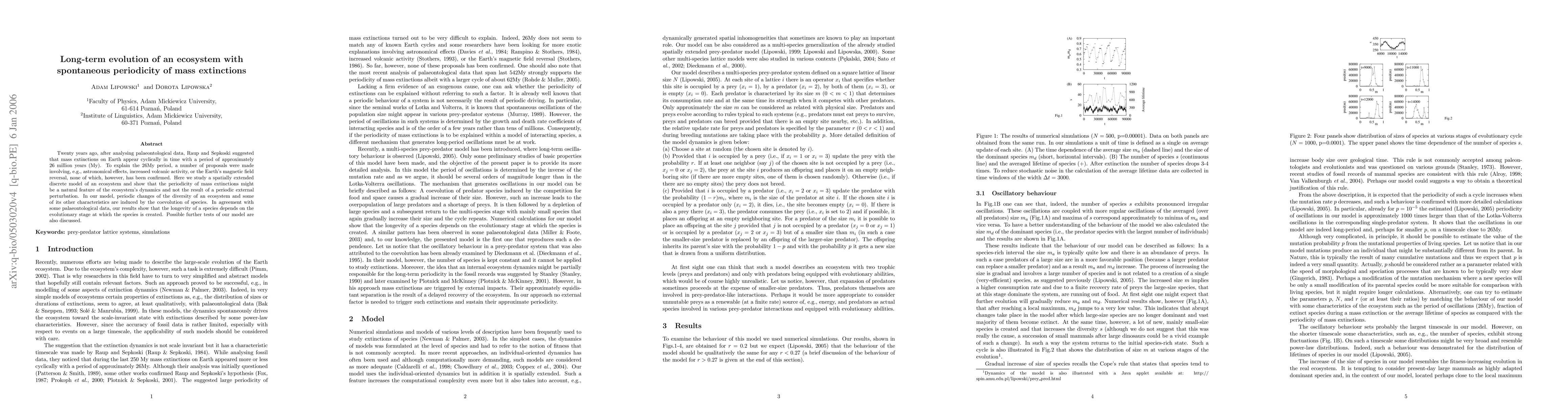 Twenty years ago, after analysing palaeontological data, Raup and Sepkoski suggested that mass extinctions on Earth appear cyclically in time with a period of approximately 26 million years (My). To explain the 26My period, a number of proposals were made involving, e.g., astronomical effects, increased volcanic activity, or the Earth's magnetic field reversal, none of which, however, has been confirmed. Here we study a spatially extended discrete model of an ecosystem and show that the periodicity of mass extinctions might be a natural feature of the ecosystem's dynamics and not the result of a periodic external perturbation. In our model, periodic changes of the diversity of an ecosystem and some of its other characteristics are induced by the coevolution of species. In agreement with some palaeontological data, our results show that the longevity of a species depends on the evolutionary stage at which the species is created. Possible further tests of our model are also discussed.
