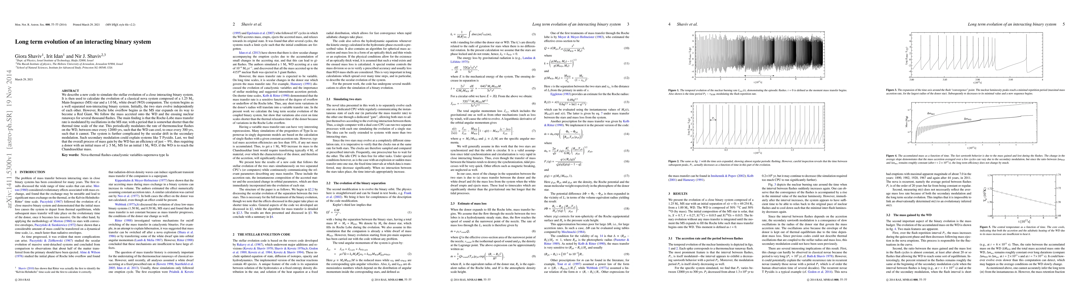 We describe a new code to simulate the stellar evolution of a close interacting binary system. It is then used to calculate the evolution of a classical nova system composed of a 1.25 Msun Main-Sequence (MS) star and a 1.0 Msun white dwarf (WD) companion. The system begins as a well separated non-interacting binary system. Initially, the two stars evolve independently of each other. However, Roche lobe overflow begins as the MS star expands on its way to become a Red Giant. We follow the mass accreted onto the WD and the ensuing nuclear runaways for several thousand flashes. The main finding is that the Roche-Lobe mass transfer rate is modulated by oscillations in the MS star, with a period that is somewhat shorter than the thermal time scale of the star. This periodically modulates the rate of thermonuclear flashes on the WD, between once every 12000 yrs, such that the WD can cool, to once every 300 yrs, such that it cannot. The system is further complicated by the secular drift in the secondary modulation. Such secondary modulation could explain systems like T Pyxidis. Last, we find that the overall process of mass gain by the WD has an efficiency of roughly 9%, thus requiring a donor with an initial mass of larger than about 5 Msun MS for an initial 1 Msun WD, if the WD is to reach the Chandrasekhar mass.
