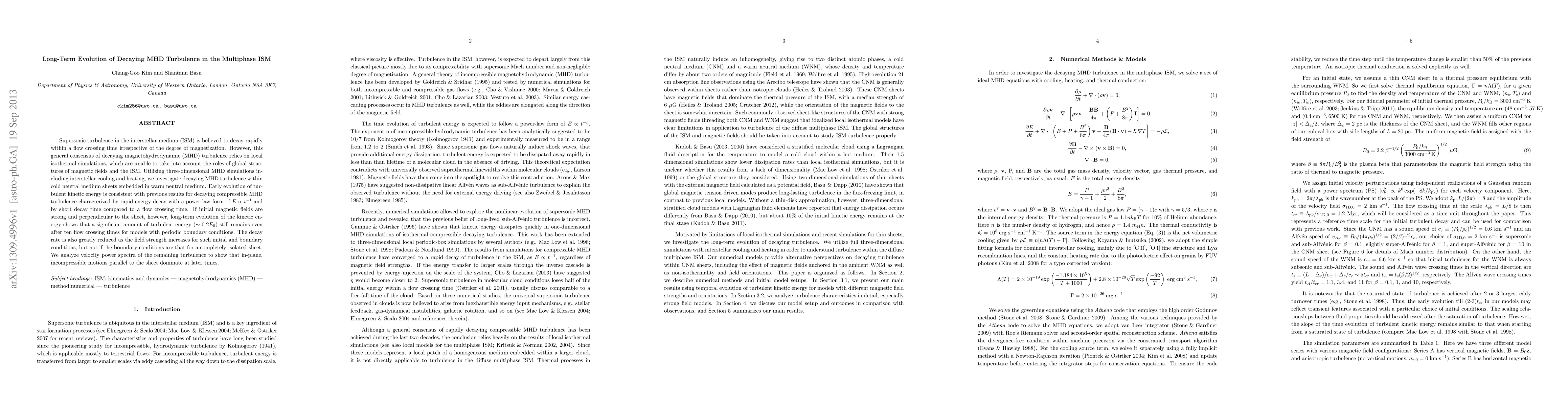 This research investigates the long-term evolution of decaying magnetohydrodynamic (MHD) turbulence in the interstellar medium (ISM), using three-dimensional MHD simulations that consider global magnetic fields and ISM structures. While initial turbulent kinetic energy decay aligns with previous findings, strong initial perpendicular magnetic fields significantly reduce the decay rate and leave a substantial amount of kinetic energy even after ten flow crossing times.