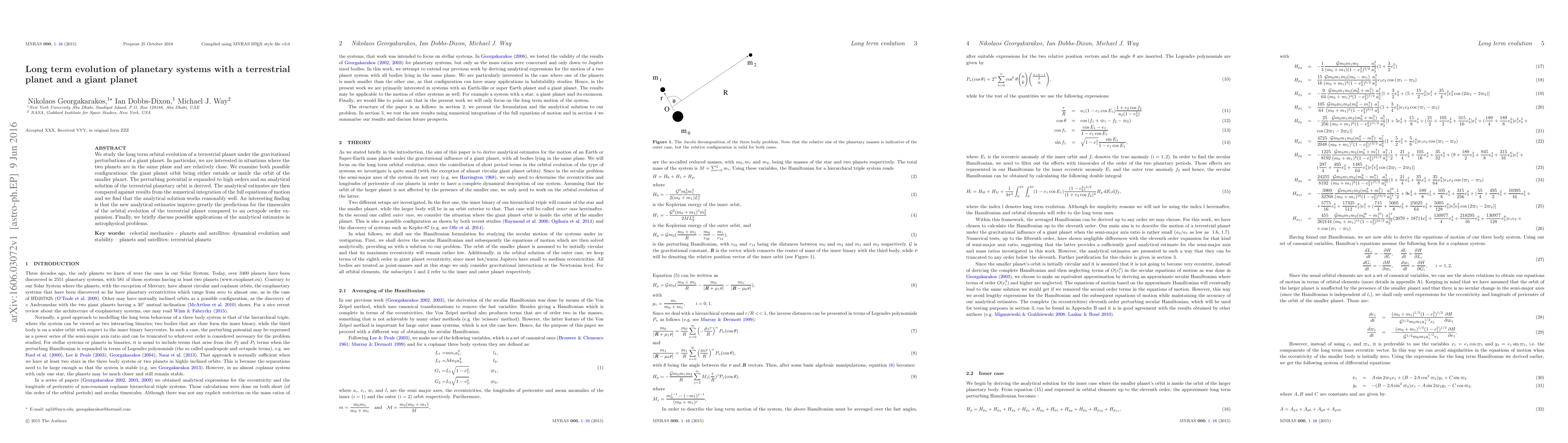 This paper investigates the long-term orbital evolution of a terrestrial planet influenced by a giant planet, focusing on configurations where both planets are in the same plane and relatively close. The study derives an analytical solution for the terrestrial planet's orbit and compares it to numerical integration, finding that the new analytical estimates significantly improve predictions for orbital evolution timescales.