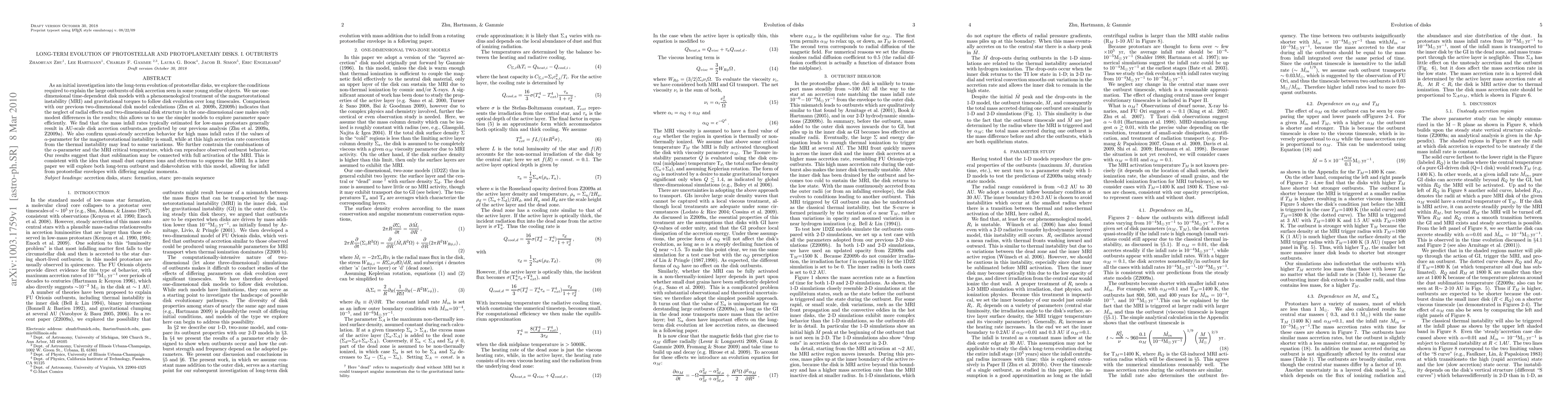 This paper investigates the long-term evolution of protostellar disks, focusing on the conditions that lead to large accretion outbursts. Using one-dimensional models, the authors find that typical mass infall rates can produce AU-scale outbursts, confirming previous two-dimensional model predictions. They also identify parameter combinations that reproduce observed outburst behavior, suggesting a connection between dust sublimation and MRI activation.