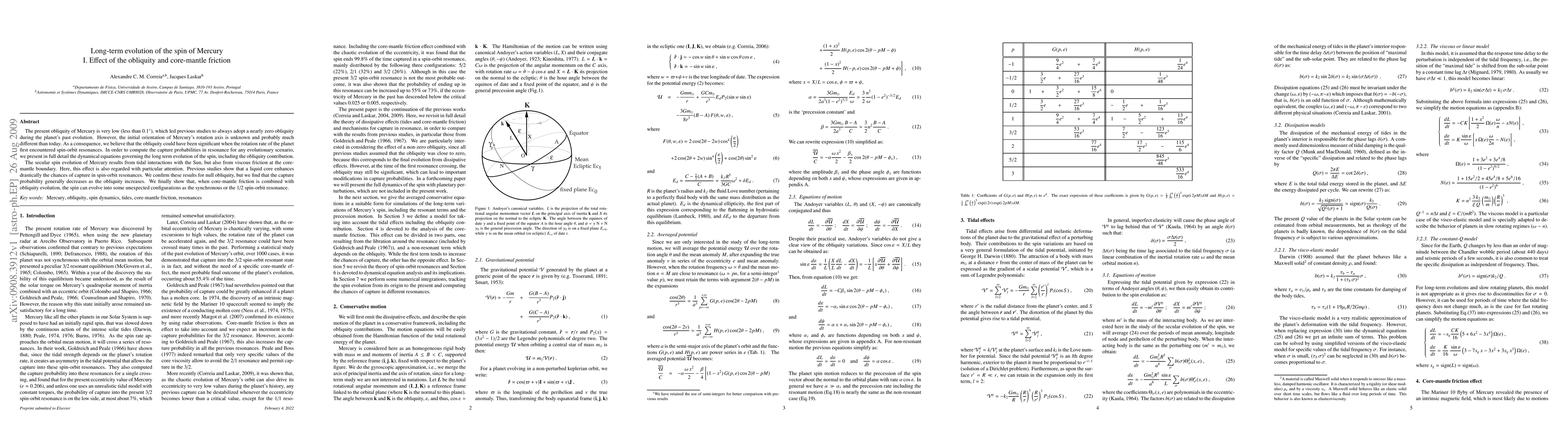 This paper investigates the long-term evolution of Mercury's spin, focusing on the effects of obliquity and core-mantle friction. It finds that while a liquid core enhances spin-orbit resonance capture, increasing obliquity generally reduces this probability, and core-mantle friction can lead to unexpected spin configurations like synchronous or 1/2 spin-orbit resonance.