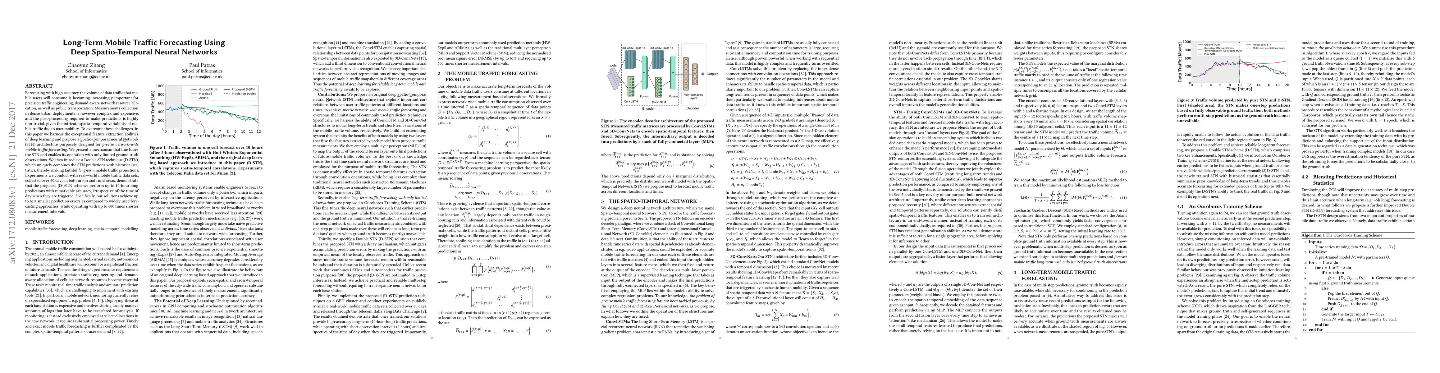 Forecasting with high accuracy the volume of data traffic that mobile users will consume is becoming increasingly important for precision traffic engineering, demand-aware network resource allocation, as well as public transportation. Measurements collection in dense urban deployments is however complex and expensive, and the post-processing required to make predictions is highly non-trivial, given the intricate spatio-temporal variability of mobile traffic due to user mobility. To overcome these challenges, in this paper we harness the exceptional feature extraction abilities of deep learning and propose a Spatio-Temporal neural Network (STN) architecture purposely designed for precise network-wide mobile traffic forecasting. We present a mechanism that fine tunes the STN and enables its operation with only limited ground truth observations. We then introduce a Double STN technique (D-STN), which uniquely combines the STN predictions with historical statistics, thereby making faithful long-term mobile traffic projections. Experiments we conduct with real-world mobile traffic data sets, collected over 60 days in both urban and rural areas, demonstrate that the proposed (D-)STN schemes perform up to 10-hour long predictions with remarkable accuracy, irrespective of the time of day when they are triggered. Specifically, our solutions achieve up to 61% smaller prediction errors as compared to widely used forecasting approaches, while operating with up to 600 times shorter measurement intervals.