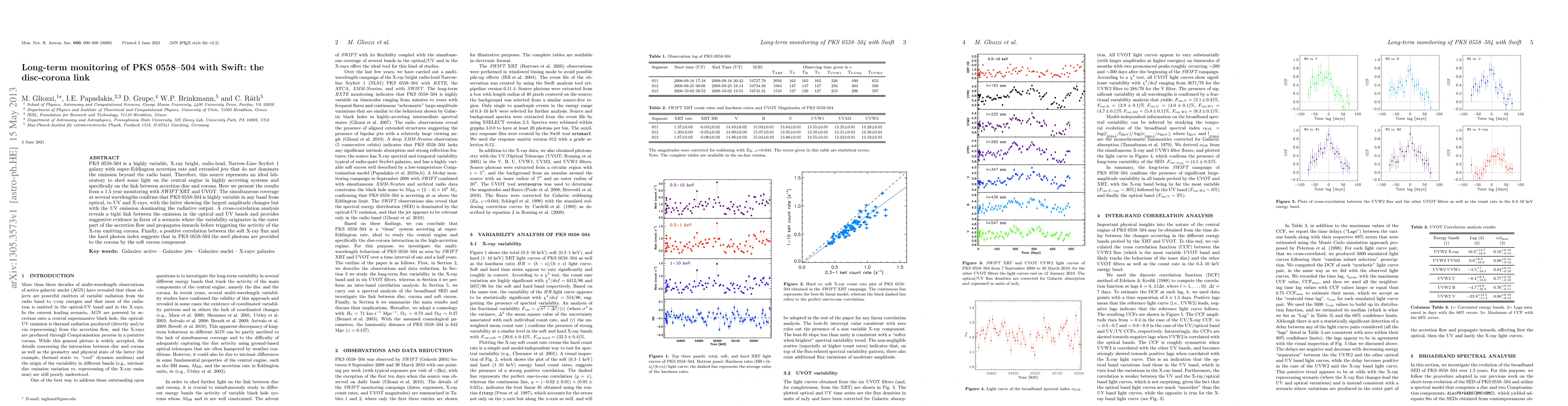 PKS 0558-504 is a highly variable, X-ray bright, radio-loud, Narrow-Line Seyfert 1 galaxy with super-Eddington accretion rate and extended jets that do not dominate the emission beyond the radio band. Therefore, this source represents an ideal laboratory to shed some light on the central engine in highly accreting systems and specifically on the link between accretion disc and corona. Here we present the results from a 1.5 year monitoring with Swift XRT and UVOT. The simultaneous coverage at several wavelengths confirms that PKS 0558-504 is highly variable in any band from optical, to UV and X-rays, with the latter showing the largest amplitude changes but with the UV emission dominating the radiative output. A cross-correlation analysis reveals a tight link between the emission in the optical and UV bands and provides suggestive evidence in favor of a scenario where the variability originates in the outer part of the accretion flow and propagates inwards before triggering the activity of the X-ray emitting corona. Finally, a positive correlation between the soft X-ray flux and the hard photon index suggests that in PKS 0558-504 the seed photons are provided to the corona by the soft excess component.