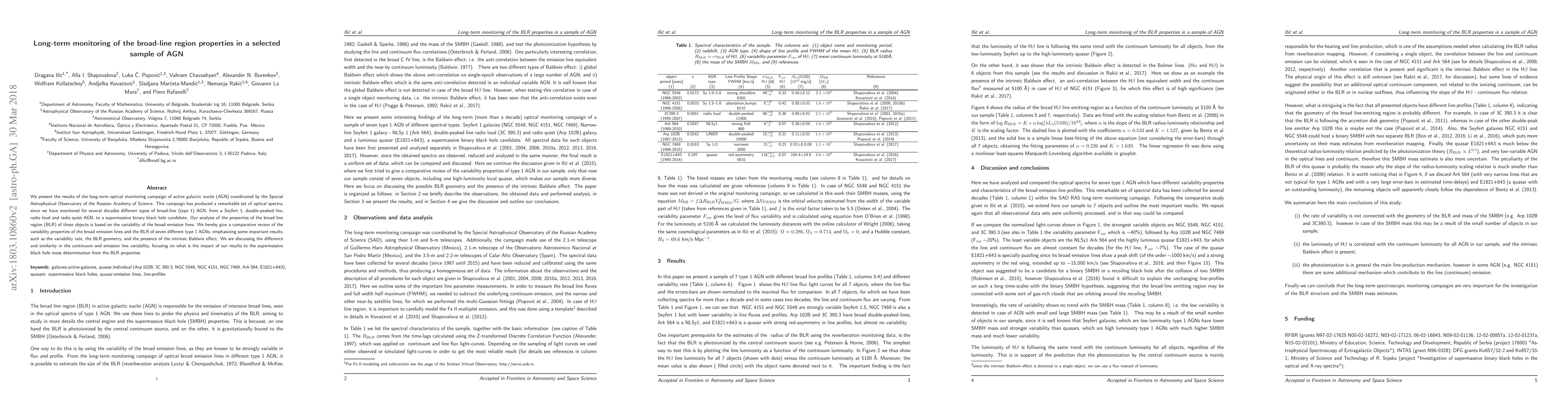 We present the results of the long-term optical monitoring campaign of active galactic nuclei (AGN) coordinated by the Special Astrophysical Observatory of the Russian Academy of Science. This campaign has produced a remarkable set of optical spectra, since we have monitored for several decades different types of broad-line (type 1) AGN, from a Seyfert 1, double-peaked line, radio loud and radio quiet AGN, to a supermassive binary black hole candidate. Our analysis of the properties of the broad line region (BLR) of these objects is based on the variability of the broad emission lines. We hereby give a comparative review of the variability properties of the broad emission lines and the BLR of seven different type 1 AGNs, emphasizing some important results, such as the variability rate, the BLR geometry, and the presence of the intrinsic Baldwin effect. We are discussing the difference and similarity in the continuum and emission line variability, focusing on what is the impact of our results to the supermassive black hole mass determination from the BLR properties.