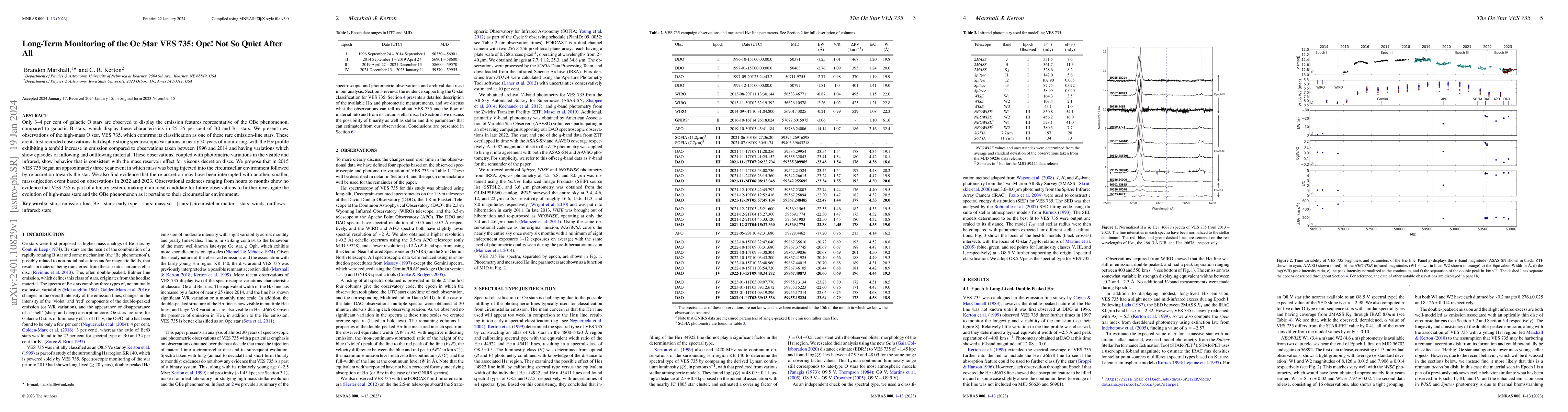The rare Oe star VES 735, previously thought to be stable, shows significant spectroscopic and photometric variations, indicating a three-year event starting in 2015 of mass injection and re-accretion, with a possible secondary mass-injection in 2022-2023. It remains a solitary star, offering insights into high-mass star evolution and the OBe phenomenon.