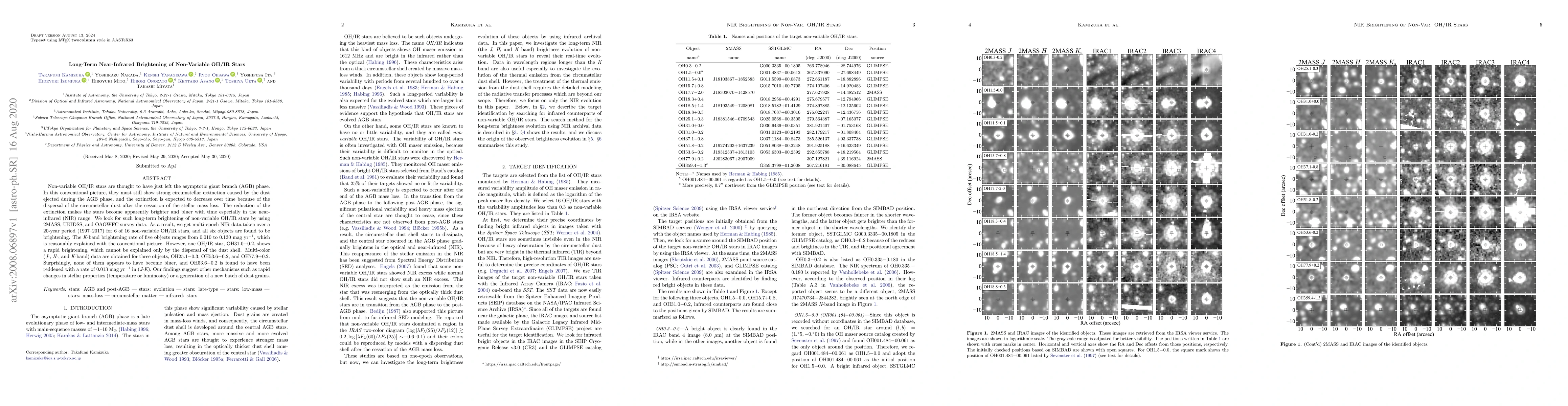 Non-variable OH/IR stars are thought to have just left the asymptotic giant branch (AGB) phase. In this conventional picture, they must still show strong circumstellar extinction caused by the dust ejected during the AGB phase, and the extinction is expected to decrease over time because of the dispersal of the circumstellar dust after the cessation of the stellar mass loss. The reduction of the extinction makes the stars become apparently brighter and bluer with time especially in the near-infrared (NIR) range. We look for such long-term brightening of non-variable OH/IR stars by using 2MASS, UKIDSS, and OAOWFC survey data. As a result, we get multi-epoch NIR data taken over a 20-year period (1997-2017) for 6 of 16 non-variable OH/IR stars, and all six objects are found to be brightening. The K-band brightening rate of five objects ranges from 0.010 to 0.130 mag yr$^{-1}$, which is reasonably explained with the conventional picture. However, one OH/IR star, OH31.0-0.2, shows a rapid brightening, which cannot be explained only by the dispersal of the dust shell. Multi-color (J-, H-, and K-band) data are obtained for three objects, OH25.1-0.3, OH53.6-0.2, and OH77.9+0.2. Surprisingly, none of them appears to have become bluer, and OH53.6-0.2 is found to have been reddened with a rate of 0.013 mag yr$^{-1}$ in (J-K). Our findings suggest other mechanisms such as rapid changes in stellar properties (temperature or luminosity) or a generation of a new batch of dust grains.