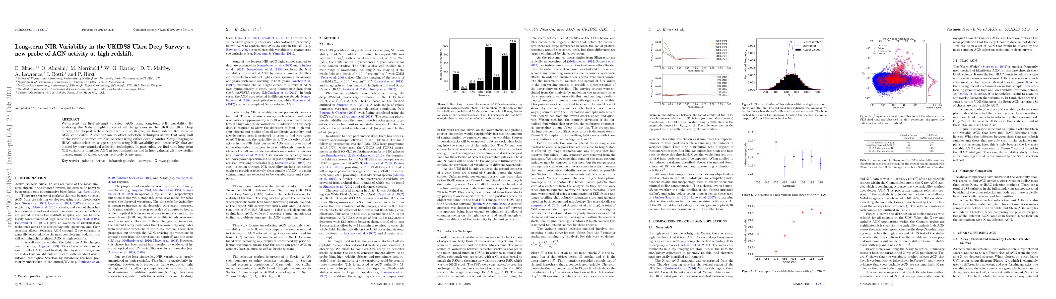 This paper explores the use of long-term near-infrared (NIR) variability in the UKIDSS Ultra Deep Survey to identify active galactic nuclei (AGN) at high redshifts. It finds that NIR variability can detect AGN missed by traditional methods, particularly those with low luminosities and in low-mass host galaxies.