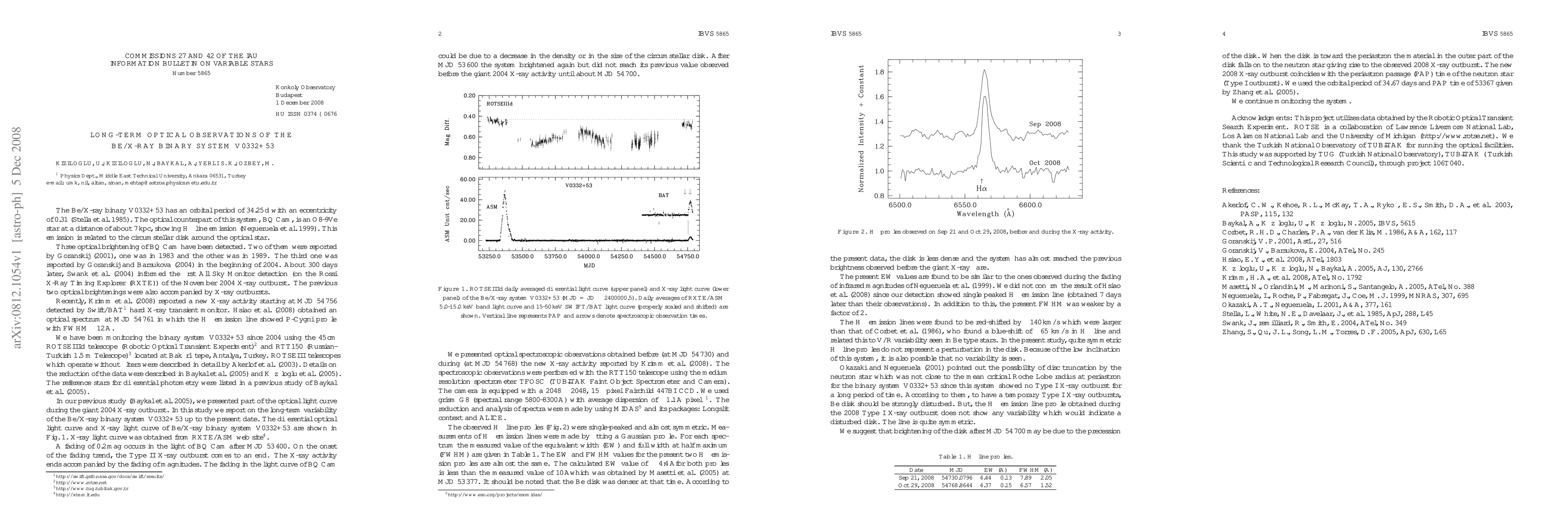 We have been monitoring the binary system V0332+53 (optical counterpart is BQ Cam) since 2004 using 45 cm ROTSEIIId telescope and RTT150 (Russian-Turkish 1.5 m Telescope) located at Bakirlitepe, Antalya, Turkey. We report on the long-term variability of this system up to the present date. There exists a fading of 0.2 mag in the light of BQ Cam after MJD 53400. The fading in the light curve of BQ Cam could be due to a decrease in the density or in the size of the circumstellar disk. We present optical spectroscopic observations obtained before (at MJD 54730) and during (at MJD 54768) the new X-ray activity reported by Krimm et al. (2008). The observed Ha line profiles were single-peaked and almost symmetric. The present EW values are found to be similar to the ones observed during the fading of infrared magnitudes of Negueruela et al. (1999). Ha emission lines were found to be red-shifted by ~140 km/s which were larger than the findings of Corbet et al. (1986). We suggest that brightening of the disk after MJD 54700 may be due to the precession of the disk.