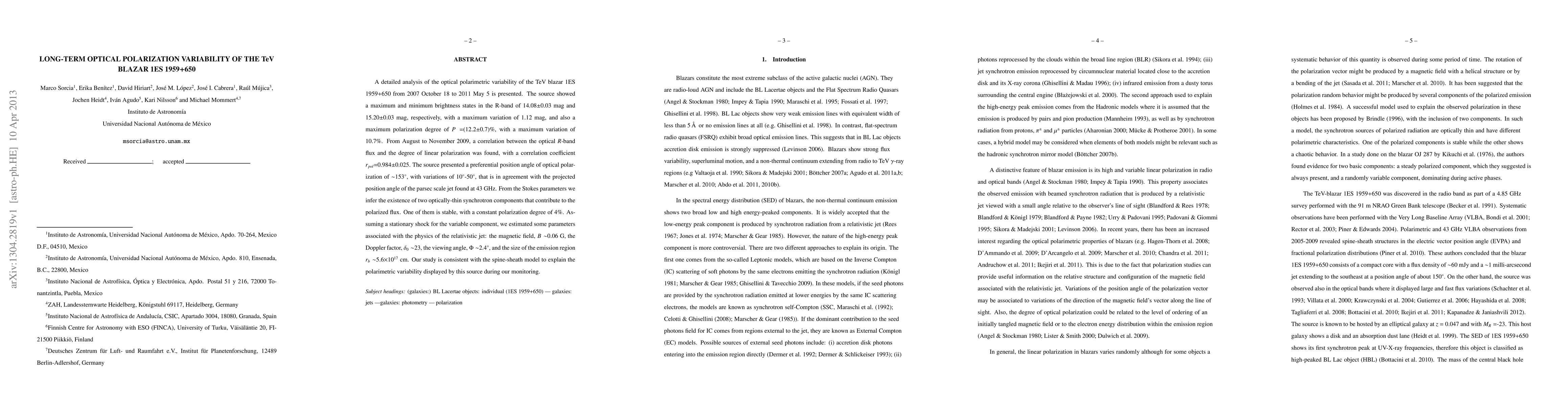 A detailed analysis of the optical polarimetric variability of the TeV blazar 1ES 1959+650 from 2007 October 18 to 2011 May 5 is presented. The source showed a maximum and minimum brightness states in the R-band of 14.08$\pm$0.03 mag and 15.20$\pm$0.03 mag, respectively, with a maximum variation of 1.12 mag, and also a maximum polarization degree of $P=$(12.2$\pm$0.7)%, with a maximum variation of 10.7%. From August to November 2009, a correlation between the optical $R$-band flux and the degree of linear polarization was found, with a correlation coefficient $r_{pol}$=0.984$\pm$0.025. The source presented a preferential position angle of optical polarization of $\sim153^{\circ}$, with variations of $10\degr$-$50\degr$, that is in agreement with the projected position angle of the parsec scale jet found at 43 GHz. From the Stokes parameters we infer the existence of two optically-thin synchrotron components that contribute to the polarized flux. One of them is stable, with a constant polarization degree of 4%. Assuming a stationary shock for the variable component, we estimated some parameters associated with the physics of the relativistic jet: the magnetic field, $B\sim$0.06 G, the Doppler factor, $\delta_{0}\sim$23, the viewing angle, $\Phi\sim2.4\degr$, and the size of the emission region $r_b\sim5.6\times10^{17}$ cm. Our study is consistent with the spine-sheath model to explain the polarimetric variability displayed by this source during our monitoring.