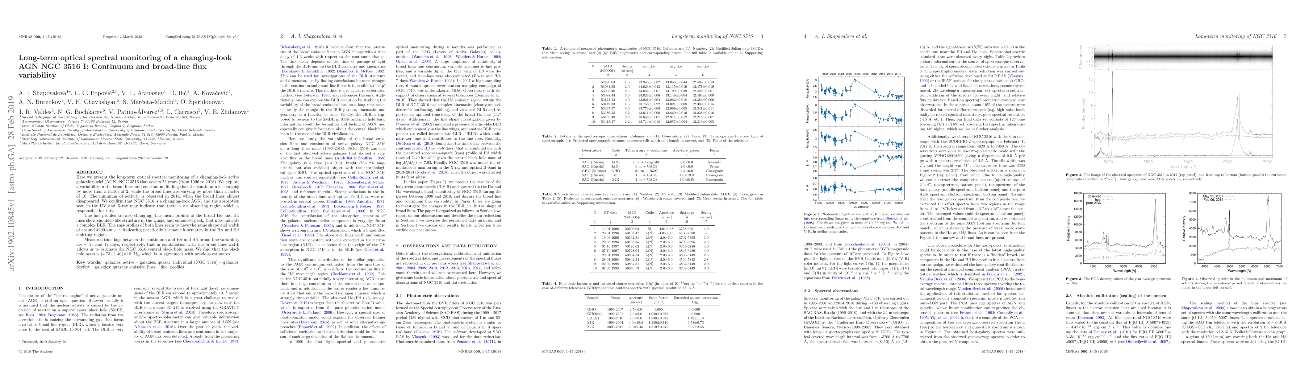 Here we present the long-term optical spectral monitoring of a changing-look active galactic nuclei (AGN) NGC 3516 that covers 22 years (from 1996 to 2018). We explore a variability in the broad lines and continuum, finding that the continuum is changing by more than a factor of 2, while the broad lines are varying by more than a factor of 10. The minimum of activity is observed in 2014, when the broad lines almost disappeared. We confirm that NGC 3516 is a changing-look AGN, and the absorption seen in the UV and X-ray may indicate that there is an obscuring region which is responsible for this. The line profiles are also changing. The mean profiles of the broad Halpha and Hbeta lines show shoulder-like structure in the wings, and enhanced peak, that may indicate a complex BLR. The rms-profiles of both lines seem to have the same shape and width of around 4200 km/s, indicating practically the same kinematics in the Halpha and Hbeta emitting regions. Measured time-lags between the continuum and Halpha and Hbeta broad-line variability are ~15 and 17 days, respectively, that in combination with the broad lines width allows us to estimate the NGC 3516 central black hole mass. We find that the black hole mass is 4.73+-1.40 x 10^7M_sun which is in agreement with previous estimates.
