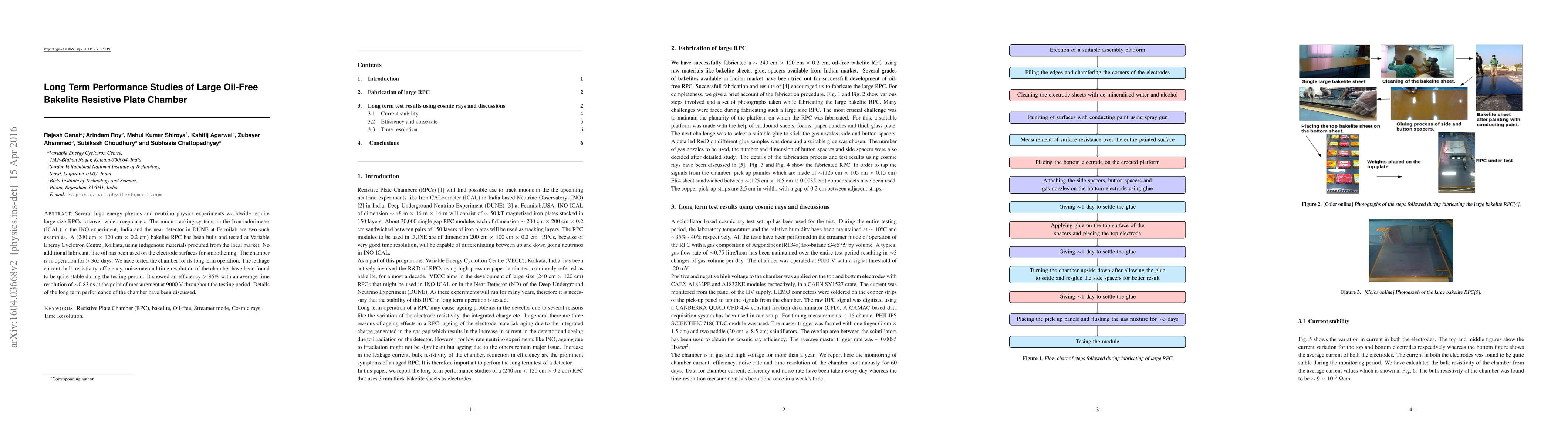 A large oil-free bakelite resistive plate chamber has been successfully tested for over 365 days, demonstrating high efficiency (>95%) and time resolution (<0.83 ns) with stable performance in its long-term operation.