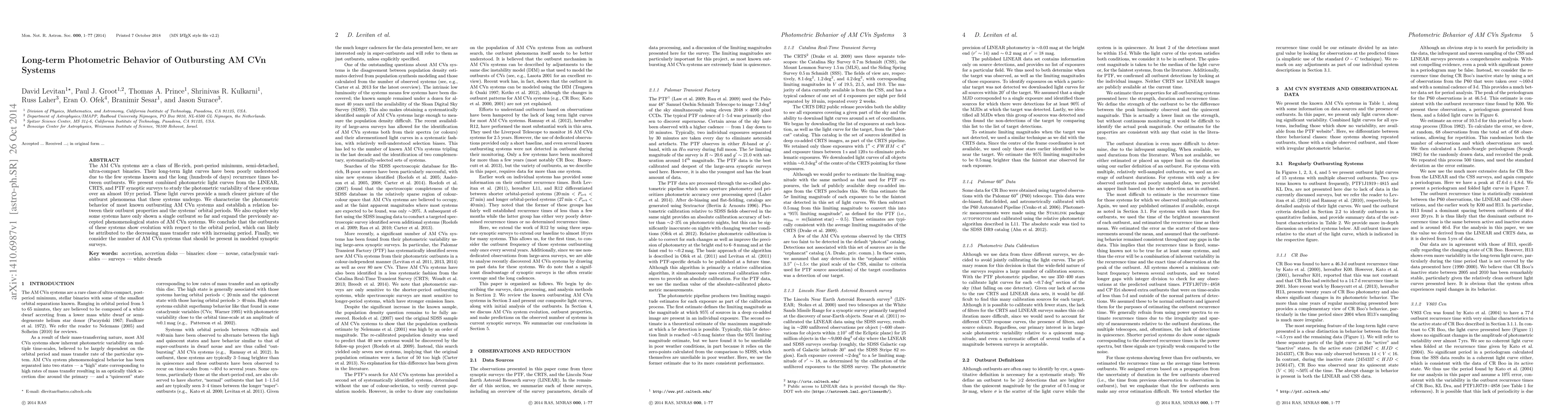 This study uses combined photometric data from multiple surveys to analyze the long-term light curves of AM CVn systems, revealing their outburst phenomena and establishing a connection between outburst properties and orbital periods. The research suggests that the outbursts evolve with orbital period, likely due to decreasing mass transfer rates.