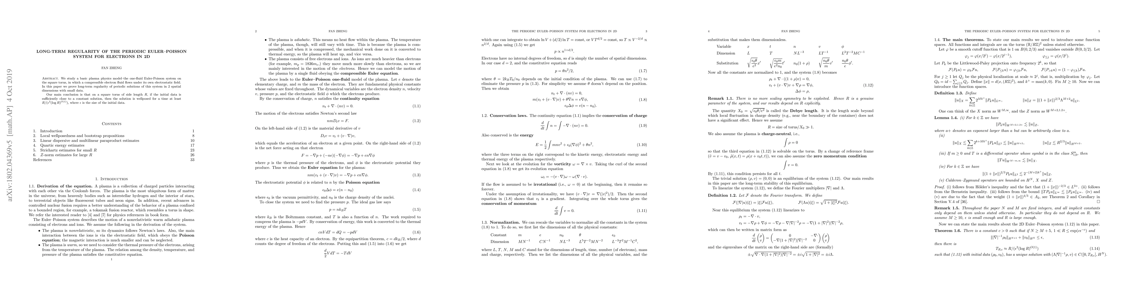 We study a basic plasma physics model--the one-fluid Euler--Poisson system on the square torus, in which a compressible electron fluid flows under its own electrostatic field. In this paper we prove long-term regularity of periodic solutions of this system in 2 spatial dimensions. Our main conclusion is that on a square torus of side length $R$, if the initial data is sufficiently close to a constant solution, then the solution is wellposed for a time at least $R/\epsilon^2(\log R)^{O(1)}$, where $\epsilon$ is the size of the initial data.