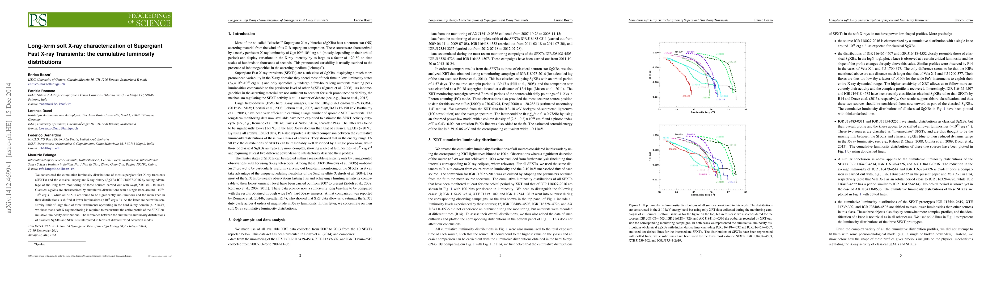 We constructed the cumulative luminosity distributions of most supergiant fast X-ray transients (SFXTs) and the classical supergiant X-ray binary (SgXB) IGR J18027-2016 by taking advantage of the long term monitoring of these sources carried out with Swift/XRT (0.3-10 keV). Classical SgXBs are characterized by cumulative distributions with a single knee around $\sim$10$^{36}$-10$^{37}$ erg/s, while all SFXTs are found to be significantly sub-luminous and the main knee in their distributions is shifted at lower luminosities ($<$10$^{35}$ erg/s). As the latter are below the sensitivity limit of large field of view instruments operating in the hard X-ray domain ($>$15 keV), we show that a soft X-ray monitoring is required to reconstruct the entire profile of the SFXT cumulative luminosity distributions. The difference between the cumulative luminosity distributions of classical SgXBs and SFXTs is interpreted in terms of different wind accretion modes.
